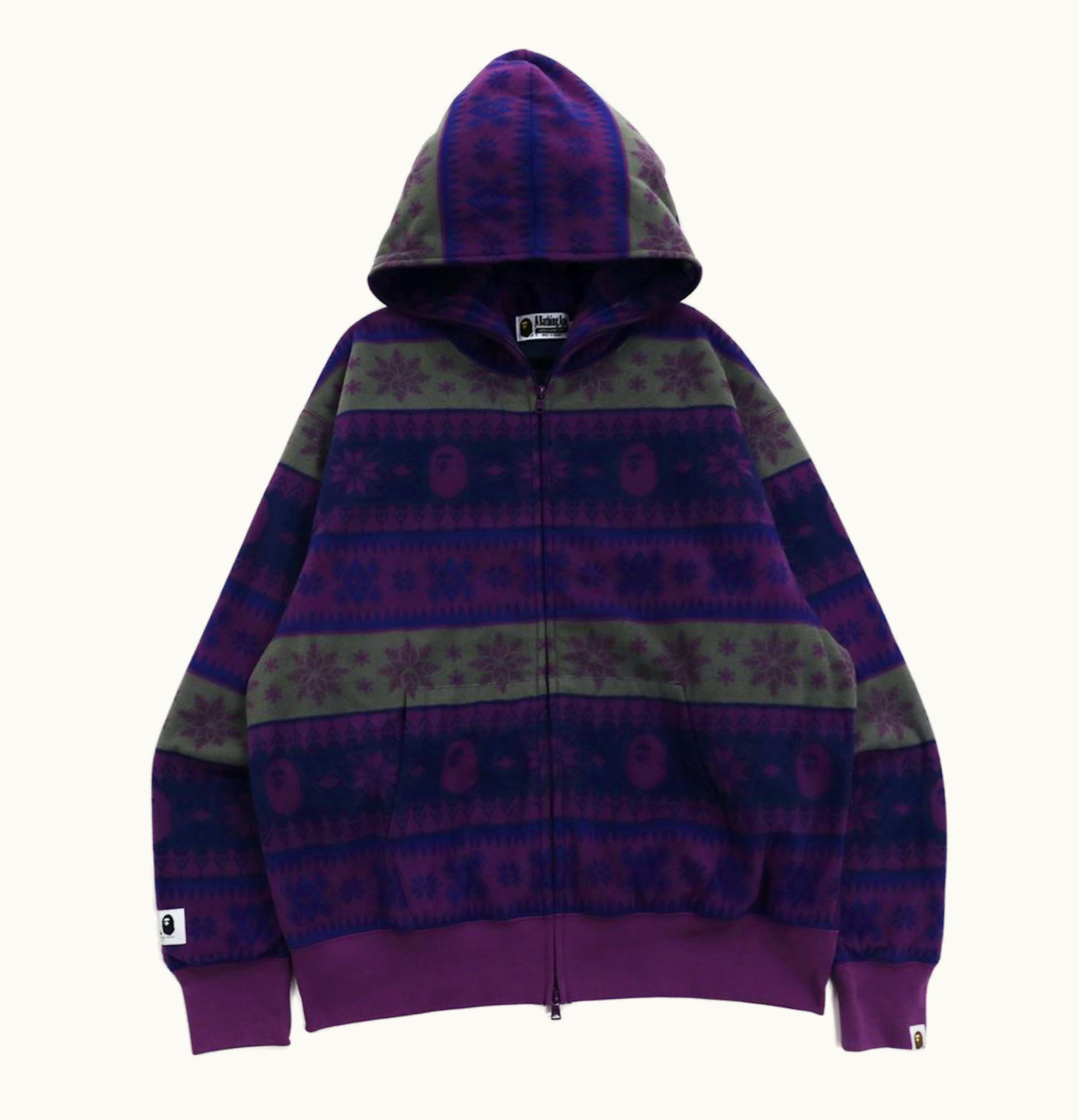 The BAPE Snow Pattern Relaxed Fit Full Zip is a high-quality and stylish full-zip hoodie designed for both comfort and warmth. It features a relaxed fit that ensures you can wear it comfortable over other clothing; grab it when you're heading out for a walk or simply lounging around at home. This hoodie features an all-over snow pattern that is sure to make you stand out from the crowd. Additionally, it is made from a mix of high-quality materials that provides excellent durability and warmth. The high-quality construction and design of the hoodie make it an excellent addition to any wardrobe, offering both style and comfort to help you feel great in any situation. Whether you are looking for a warm and cozy hoodie for chilly days or a fashionable piece to show off your street-style, the BAPE Snow Pattern Relaxed Fit Full Zip is an excellent choice.