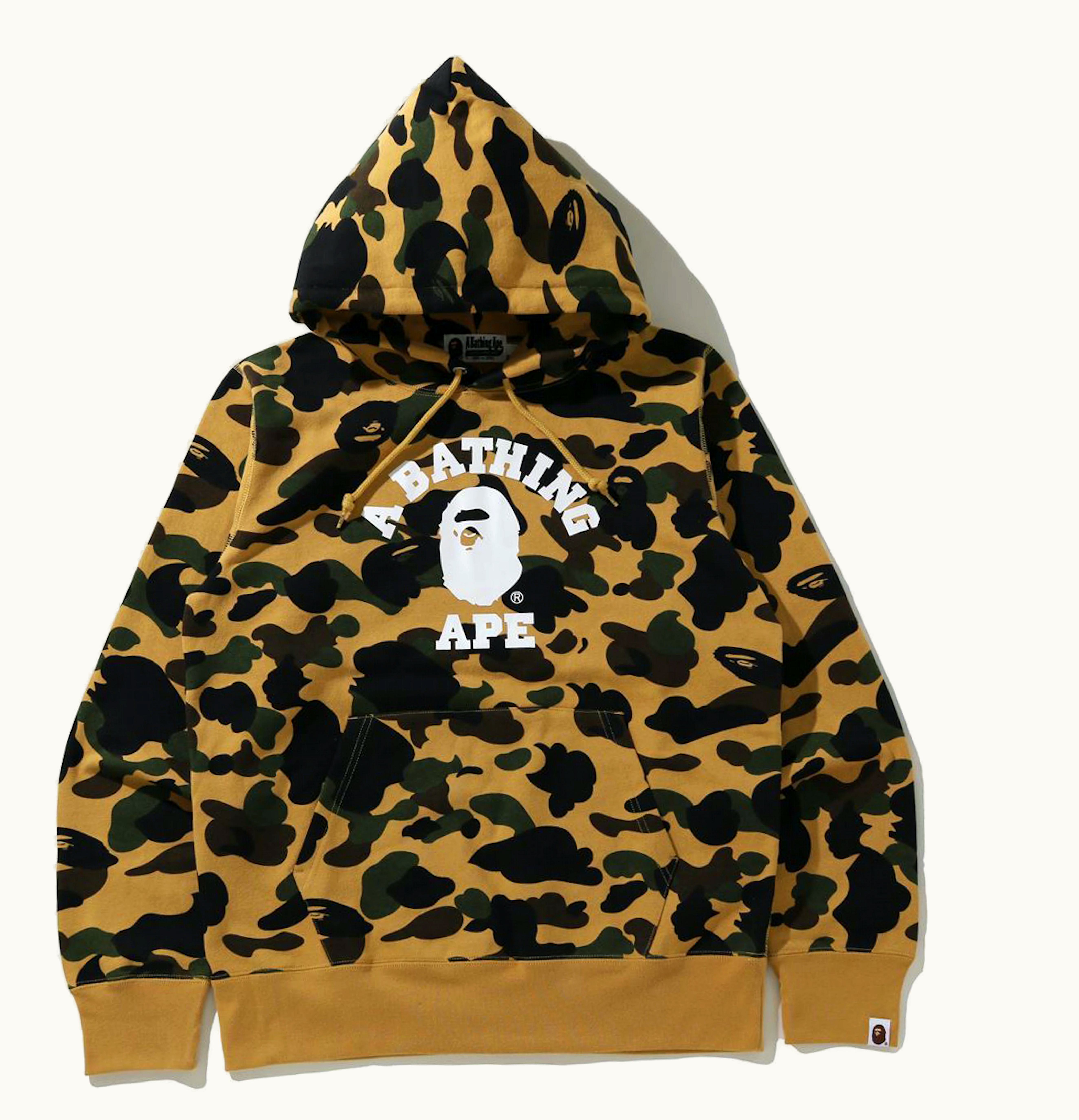 The BAPE 1st Camo College Pullover is a stylish and comfortable pullover sweatshirt designed for both men and women. Made from high-quality cotton, this pullover features an all-over camouflage print in the brand's signature "1st Camo" pattern. The sweatshirt features a classic crew neck, long sleeves with ribbed cuffs, and a ribbed hem for a comfortable fit. The BAPE logo is embroidered on the chest in a bold, contrasting color, adding a touch of streetwear style. The pullover is perfect for everyday wear, whether you're lounging at home or heading out for the day.