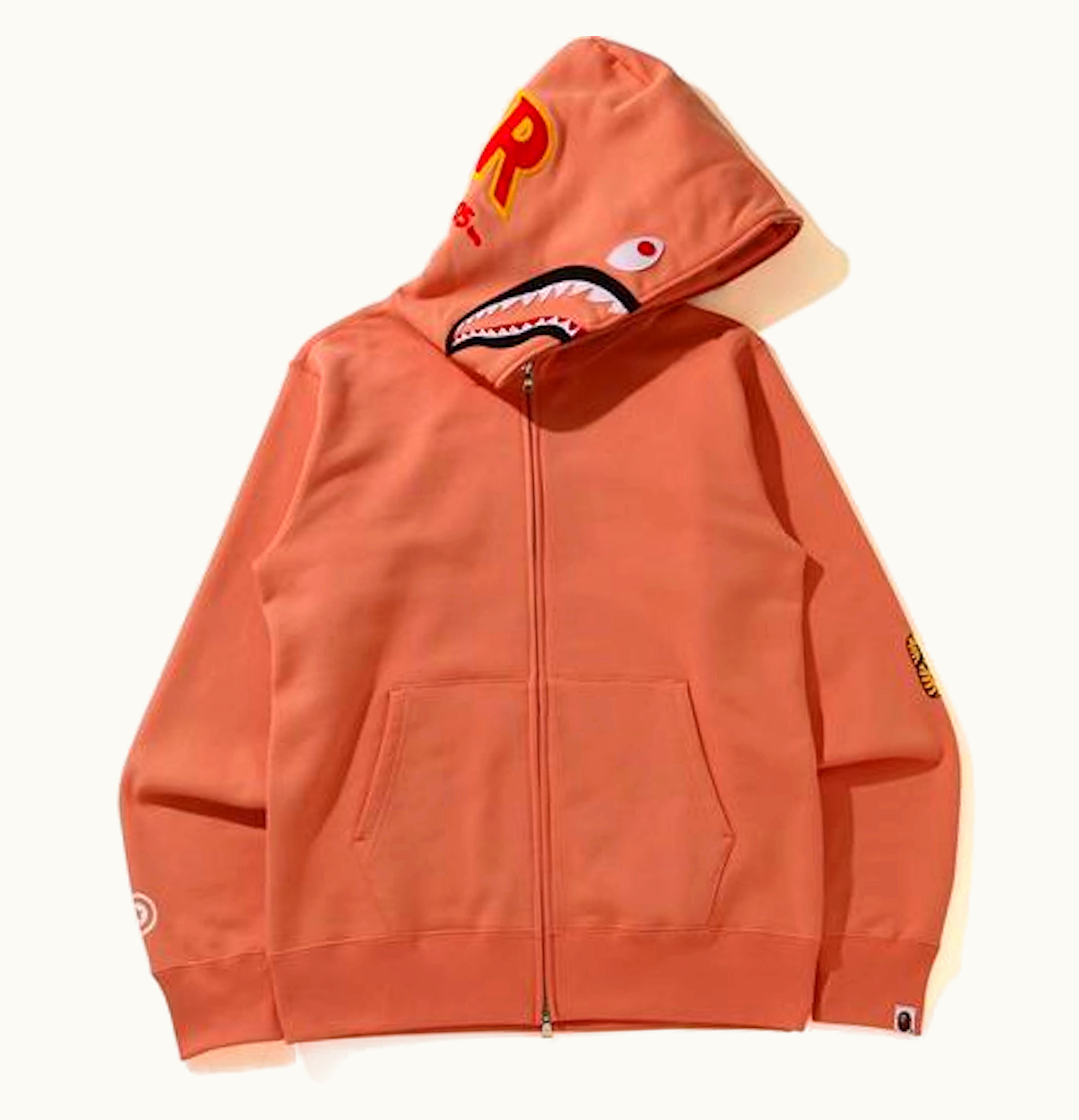 The BAPE Shark Full Zip hoodie is a premium street fashion garment made by the Japanese fashion brand A Bathing Ape. The hoodie features the iconic BAPE shark graphic on the upper hood, with fierce yellow teeth and glowing red eyes. The full zip closure makes it easy to put on and take off, while the kangaroo pockets keep your hands warm and your belongings secure. Made with high-quality cotton fleece material, this hoodie is designed to be durable and comfortable for everyday wear. The signature BAPE camo pattern is also present on the interior lining of the hoodie, adding a unique touch to the design. The BAPE Shark Full Zip hoodie is a must-have for fashion-forward individuals looking for a statement piece that blends style and comfort seamlessly.