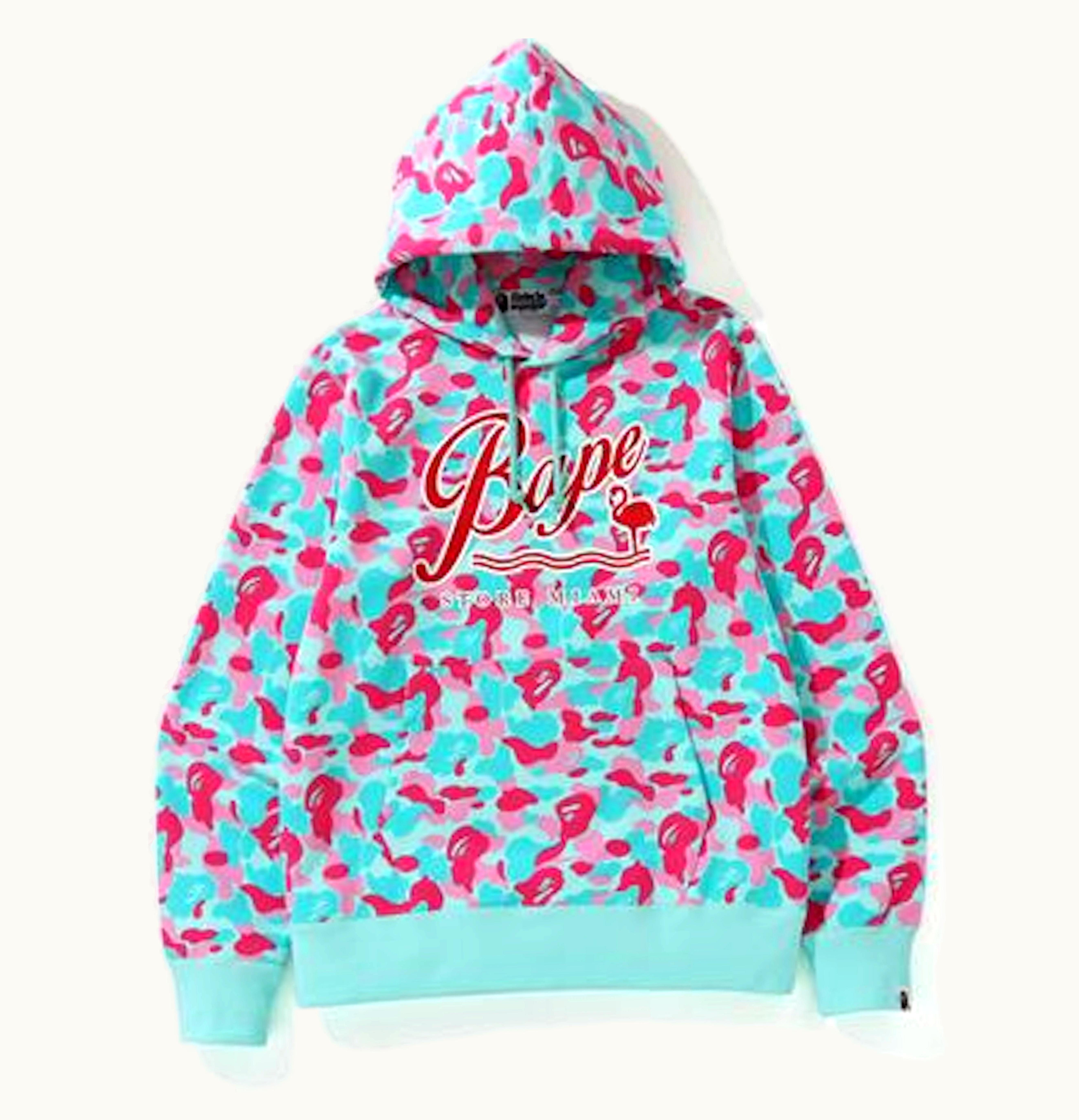 BAPE Store Miami Pullover Hoodie Pink Blue | GLINT
