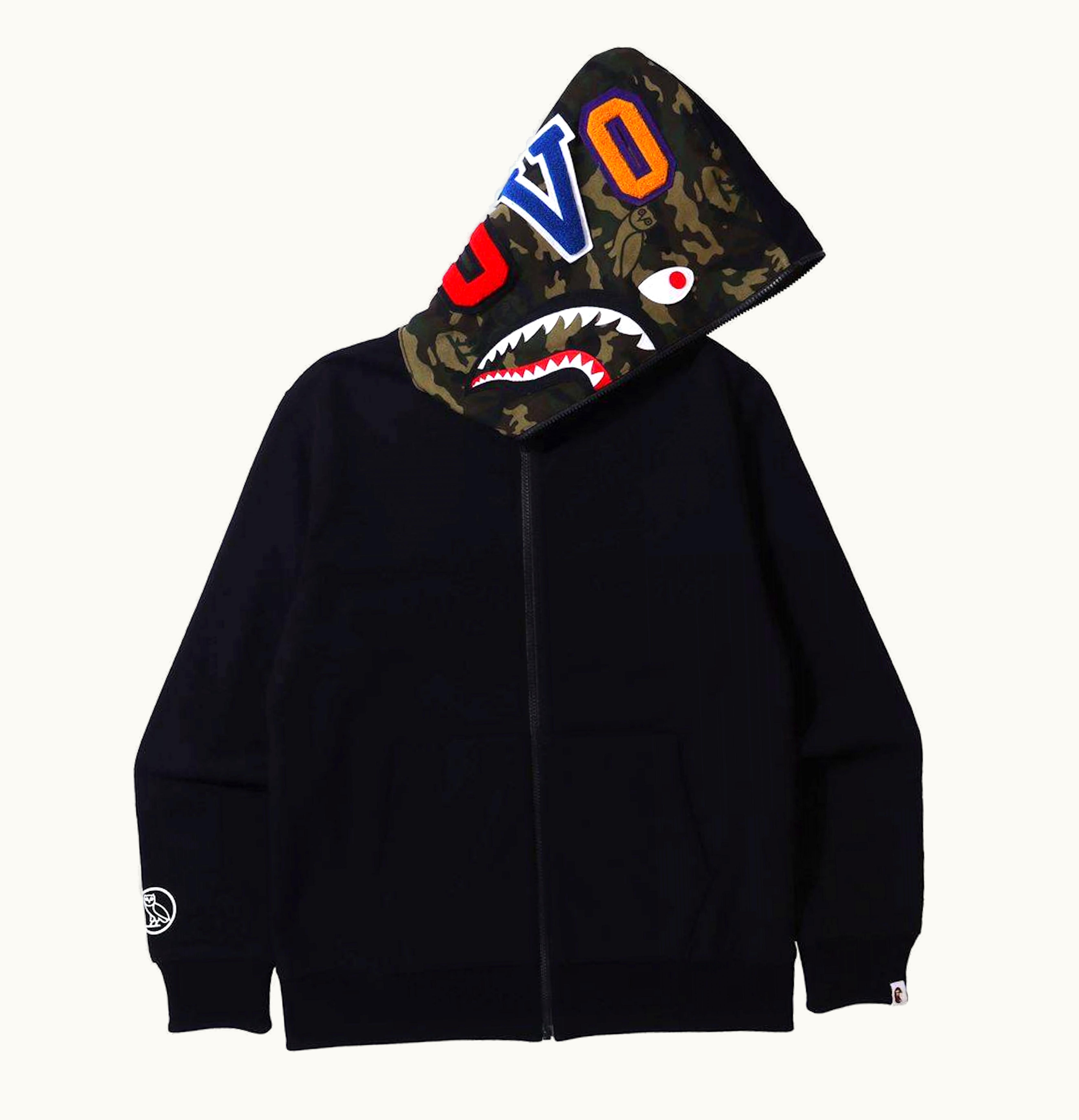 BAPE x OVO Woodland Camo Shark Reversible Full Zip Hoodie Black | GLINT