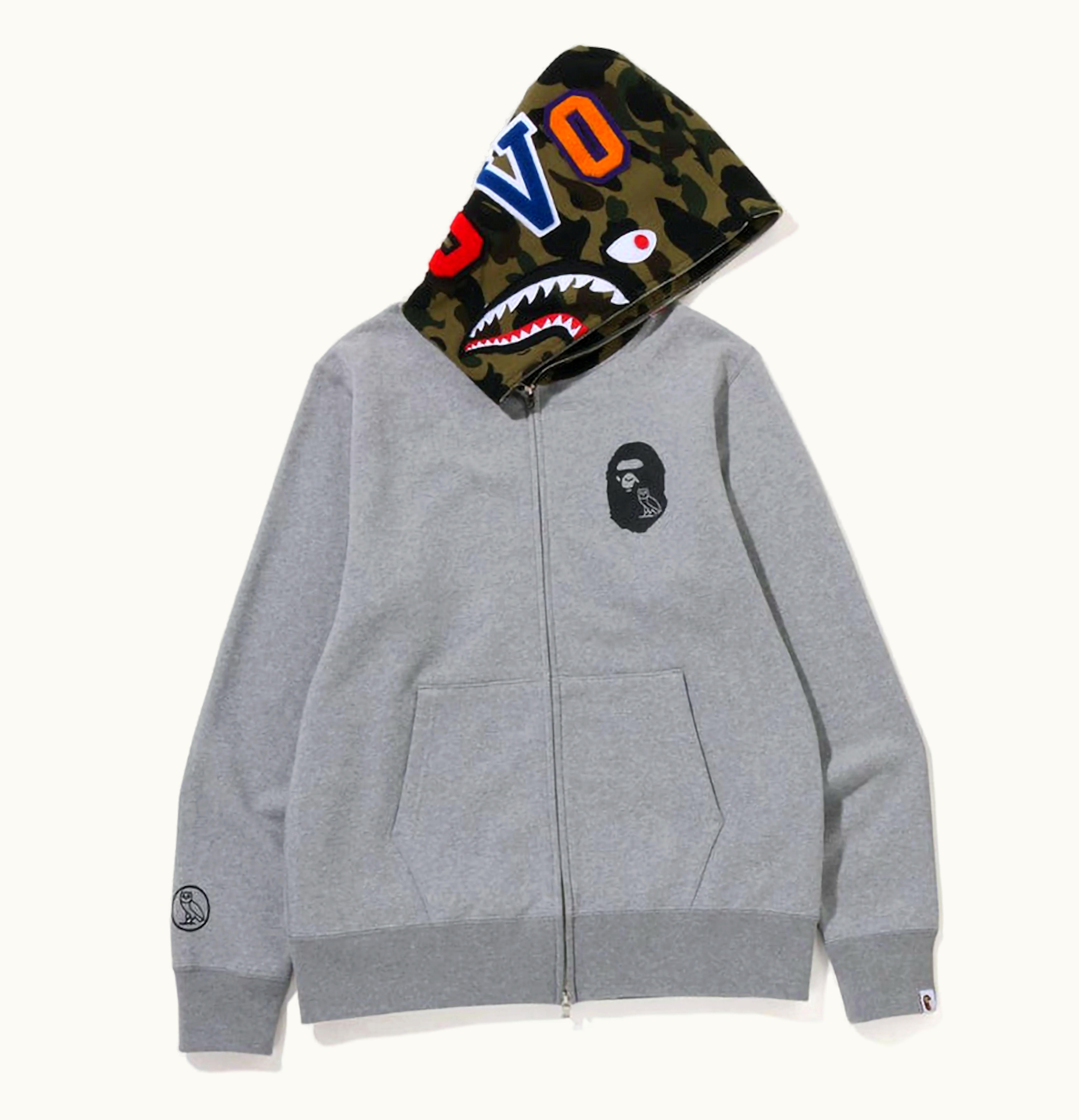 BAPE x OVO Shark Full Zip Hoodie Grey | GLINT