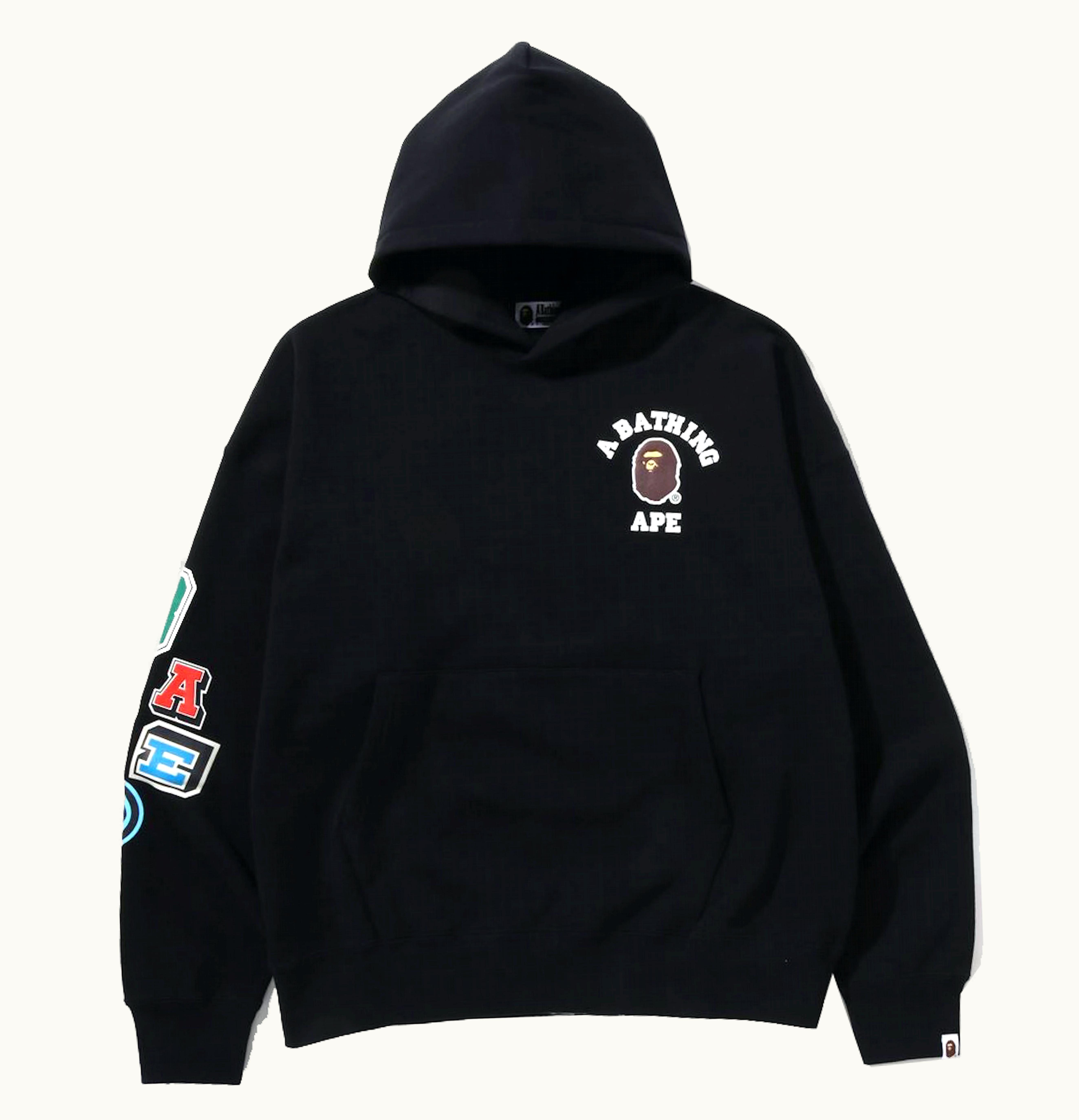 BAPE Multi Fonts Loose Fit Pullover Hoodie Black | GLINT