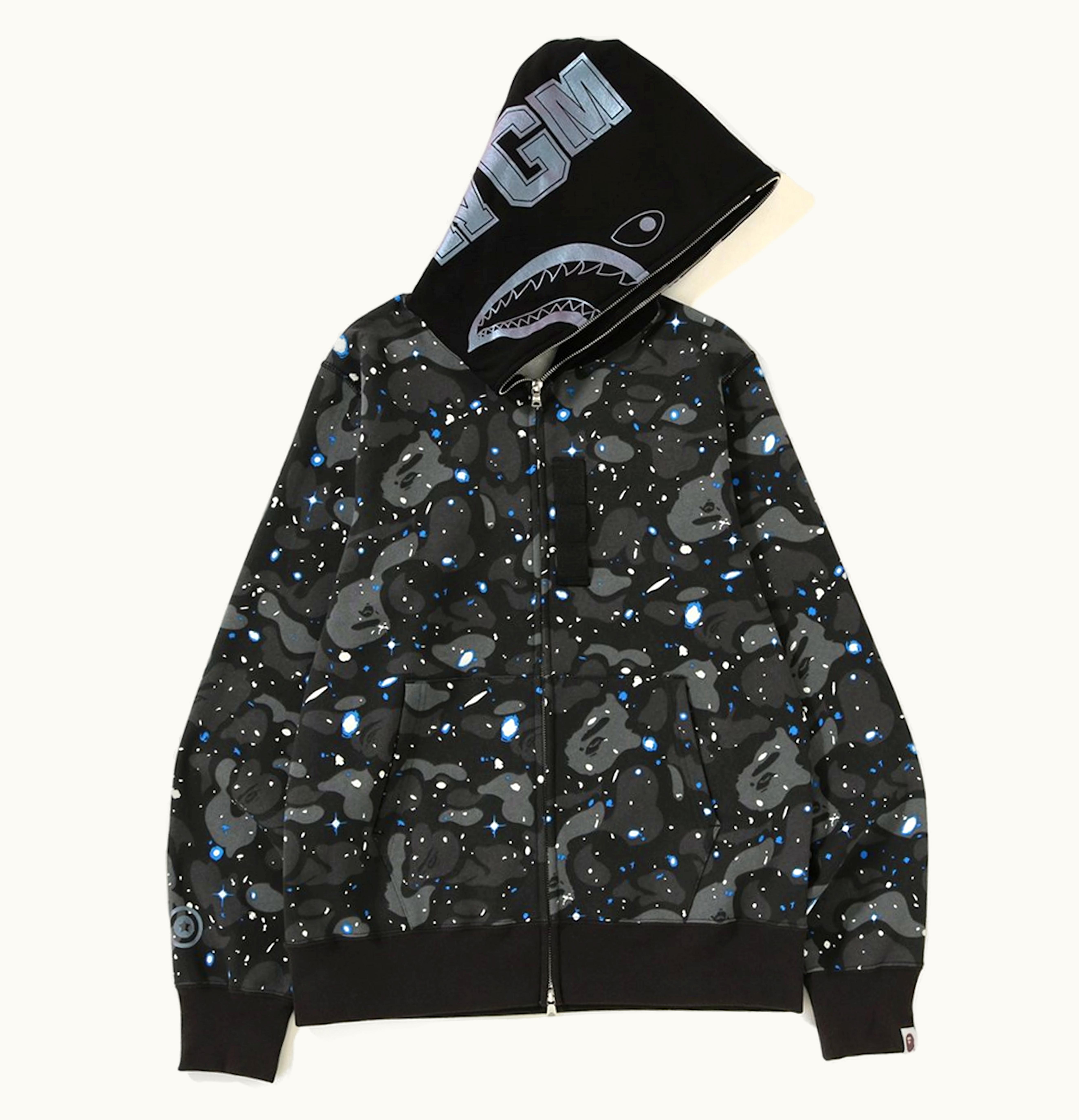 BAPE Space Camo Shark Full Zip Hoodie Black | GLINT