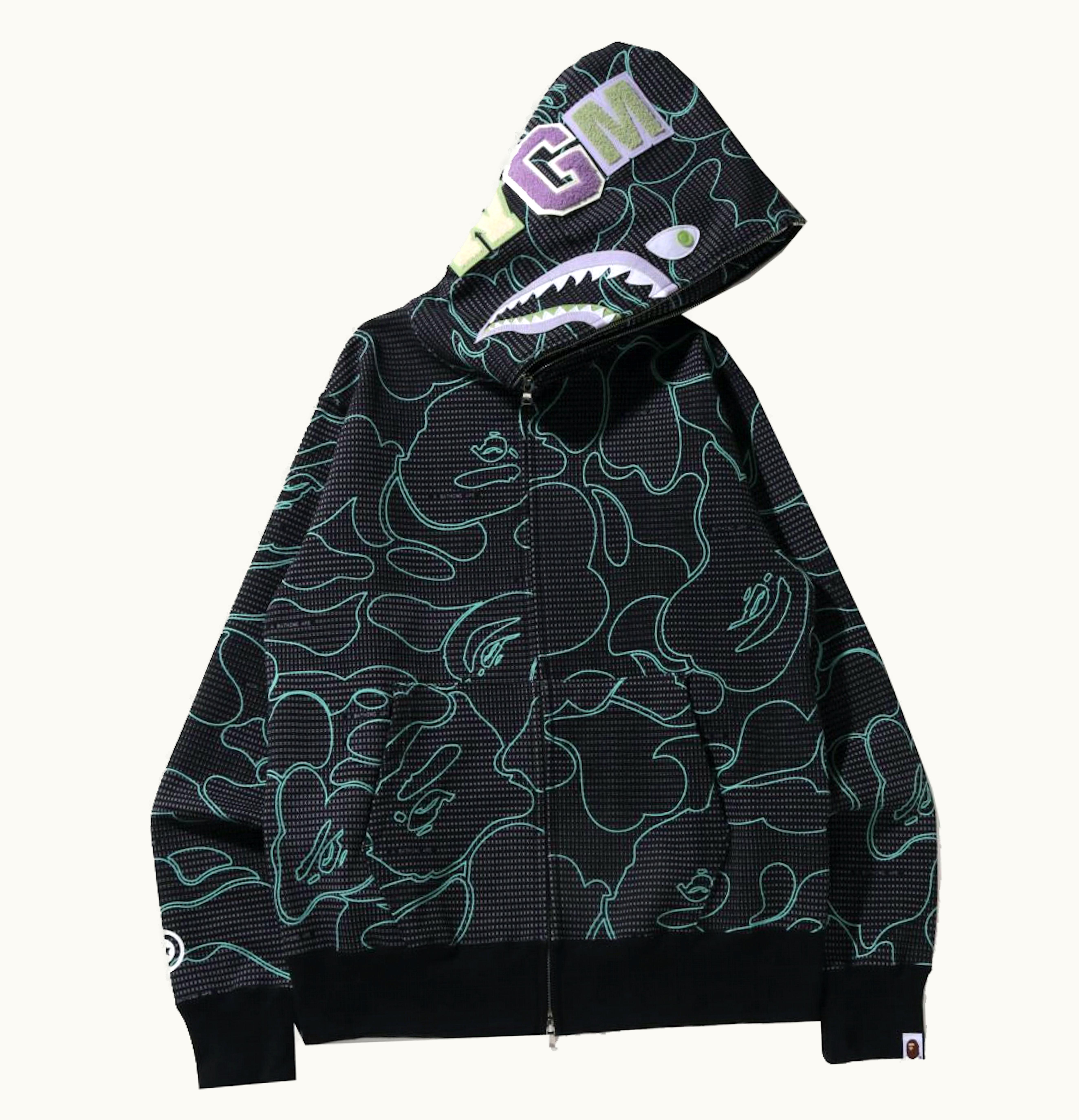 BAPE Text Code Camo Shark Full Zip Hoodie Black | GLINT
