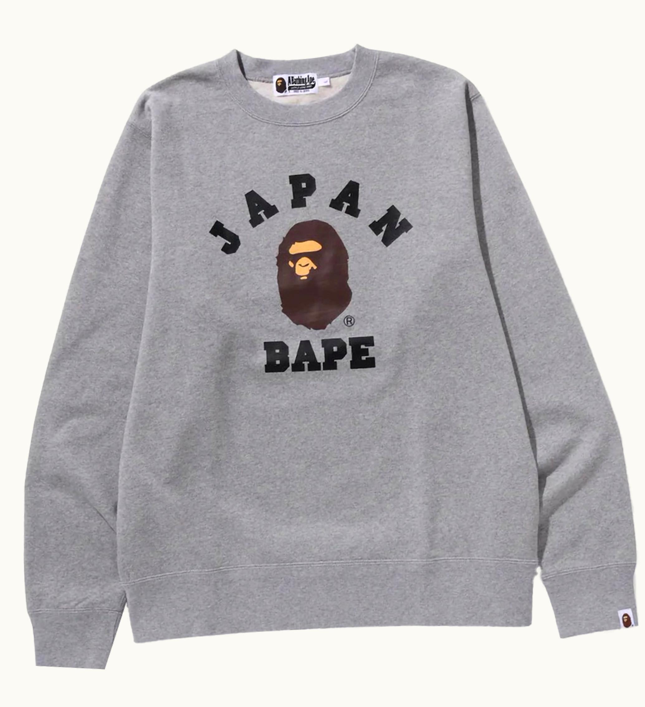 BAPE Japan College Crewneck FW23 Gray | GLINT
