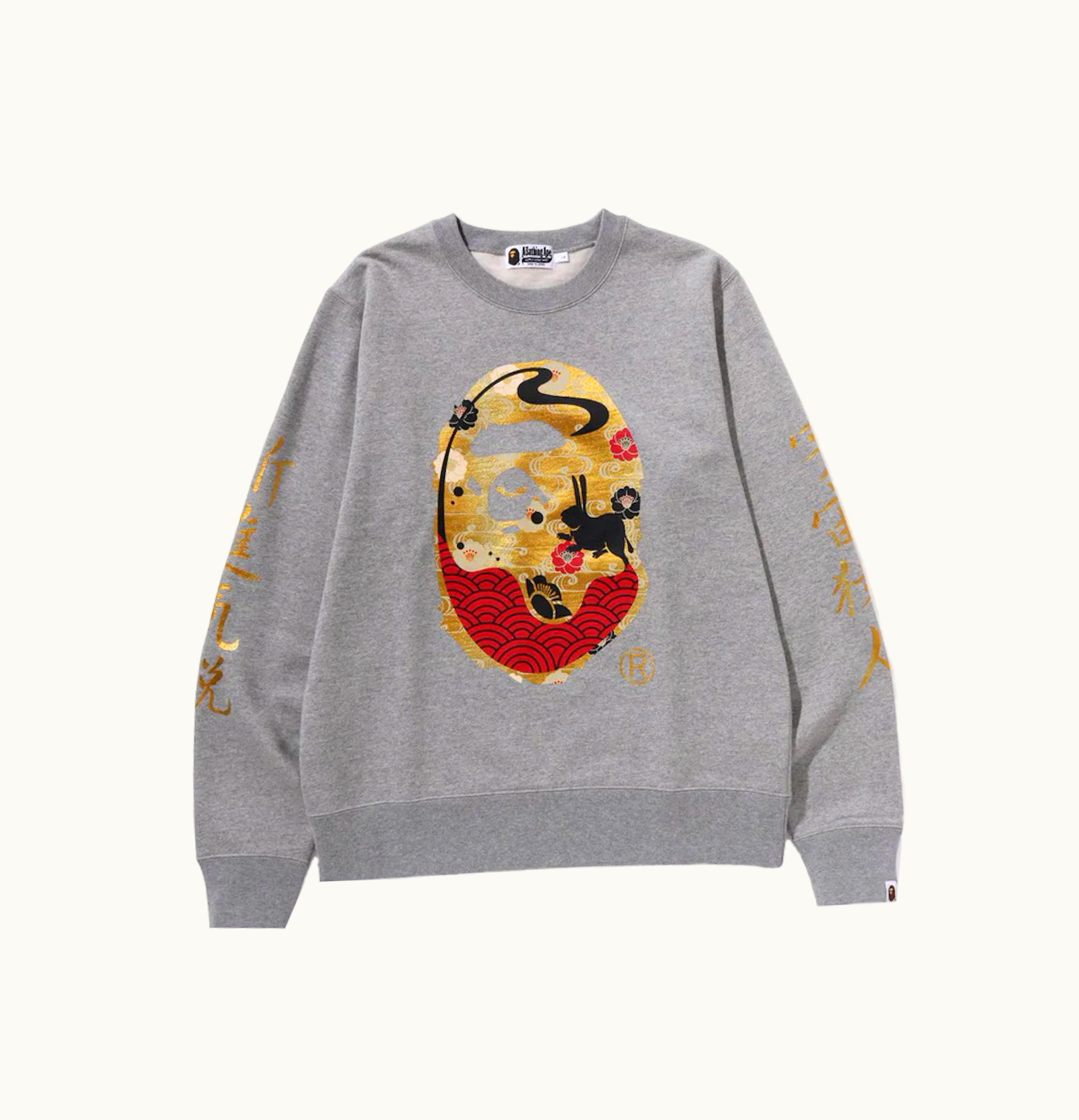 BAPE Moon Japan Ape Head Crewneck Gray | GLINT