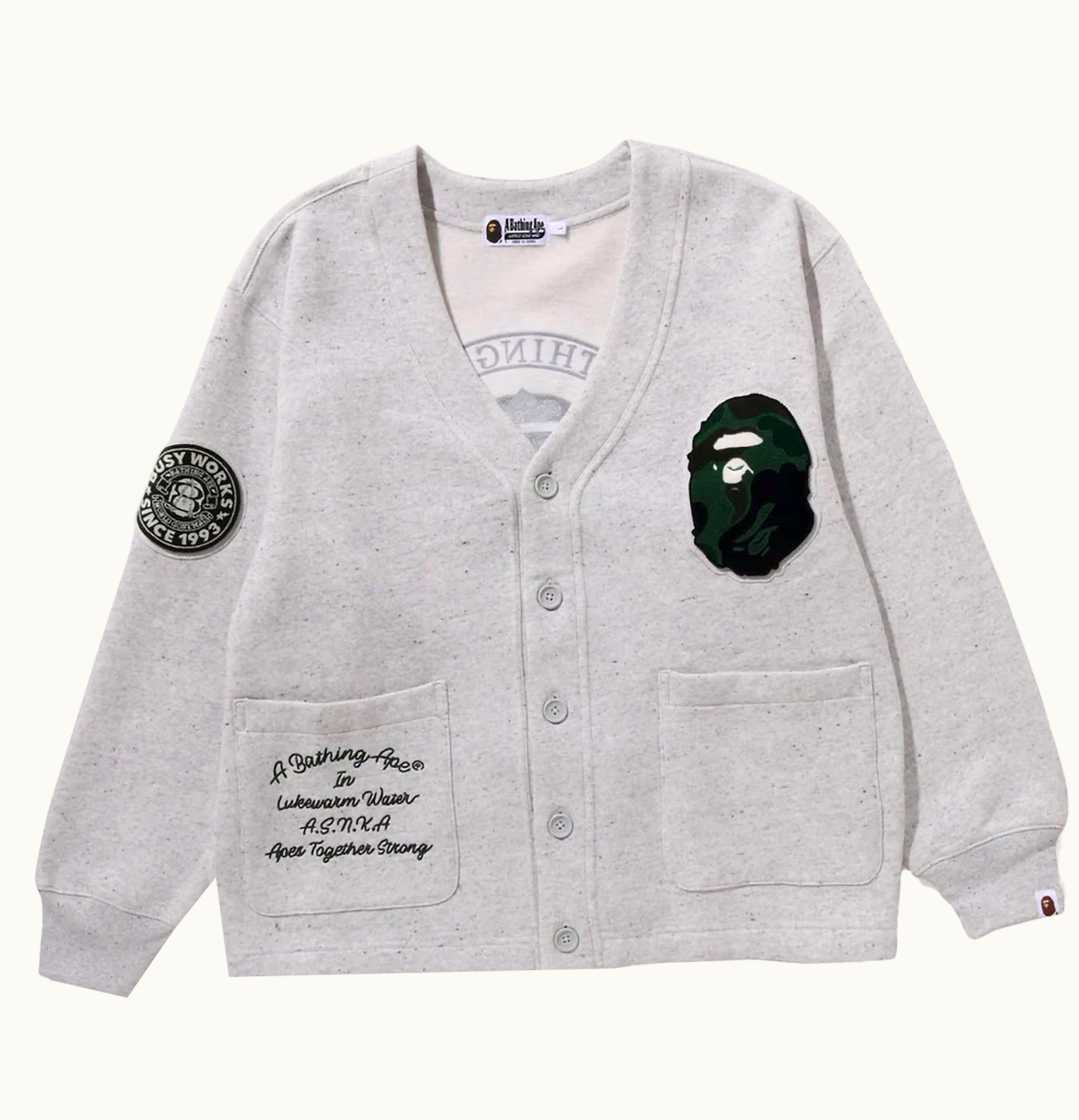 BAPE College Badges Sweat Cardigan Gray | GLINT