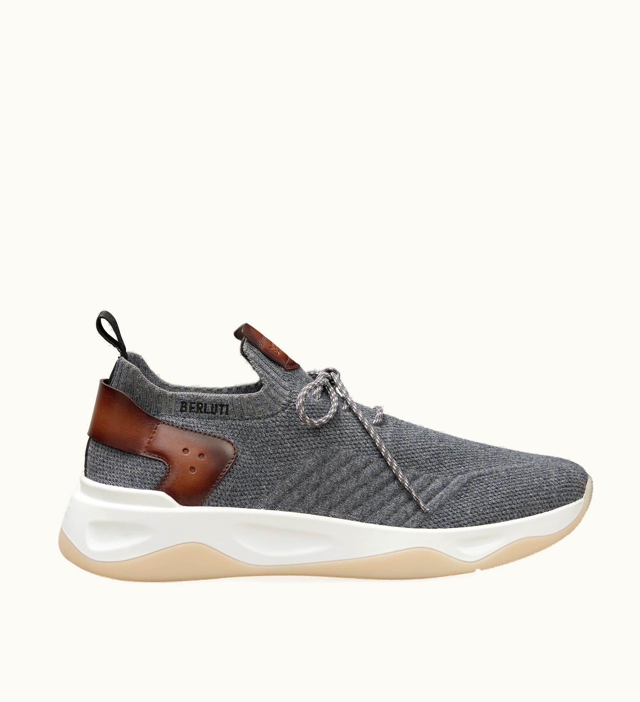 Berluti Shadow Cashmere And Leather Sneaker Grey | GLINT