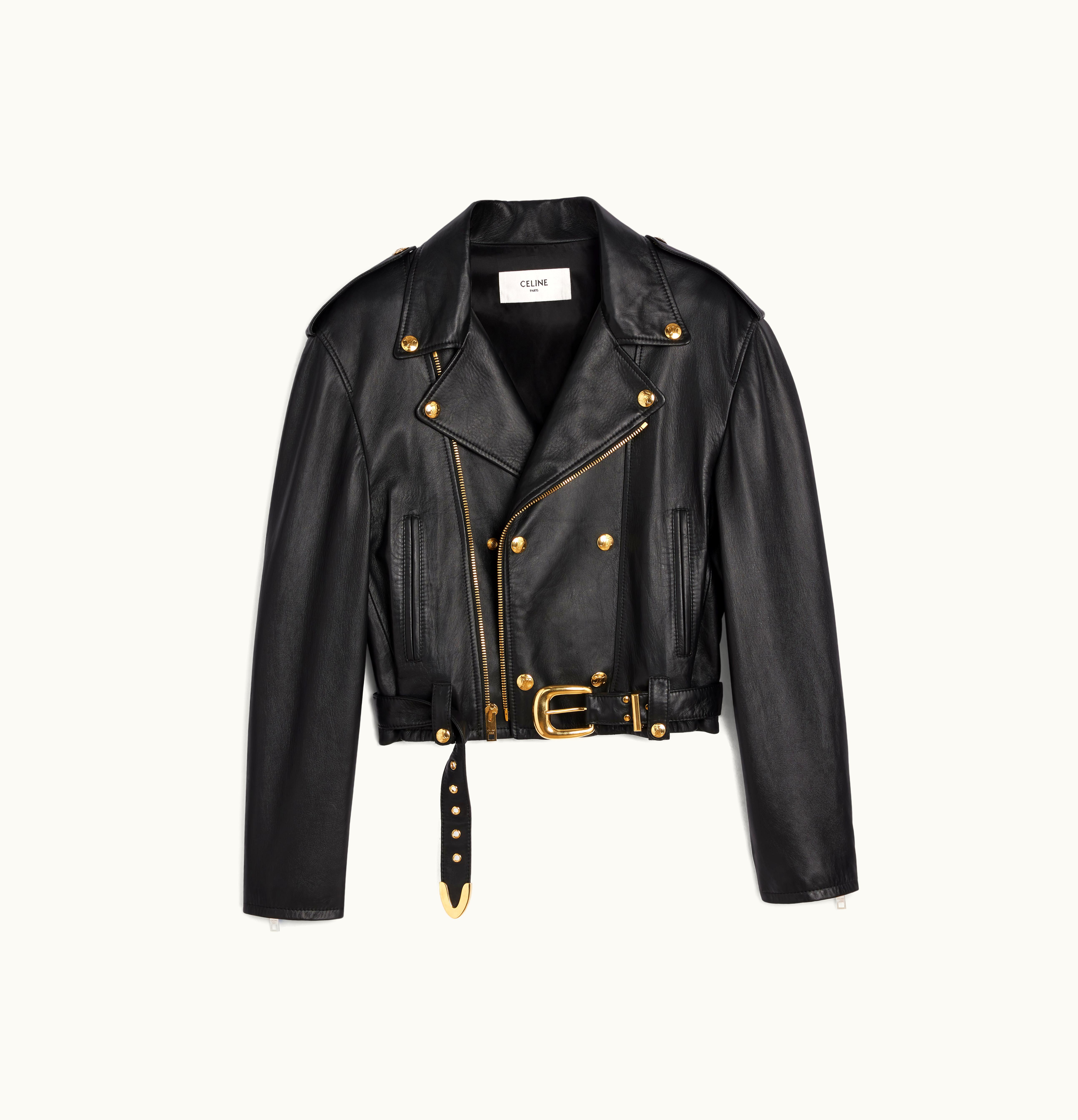 Celine Triomphe Leather Biker Jacket In Soft Lambskin Black | GLINT