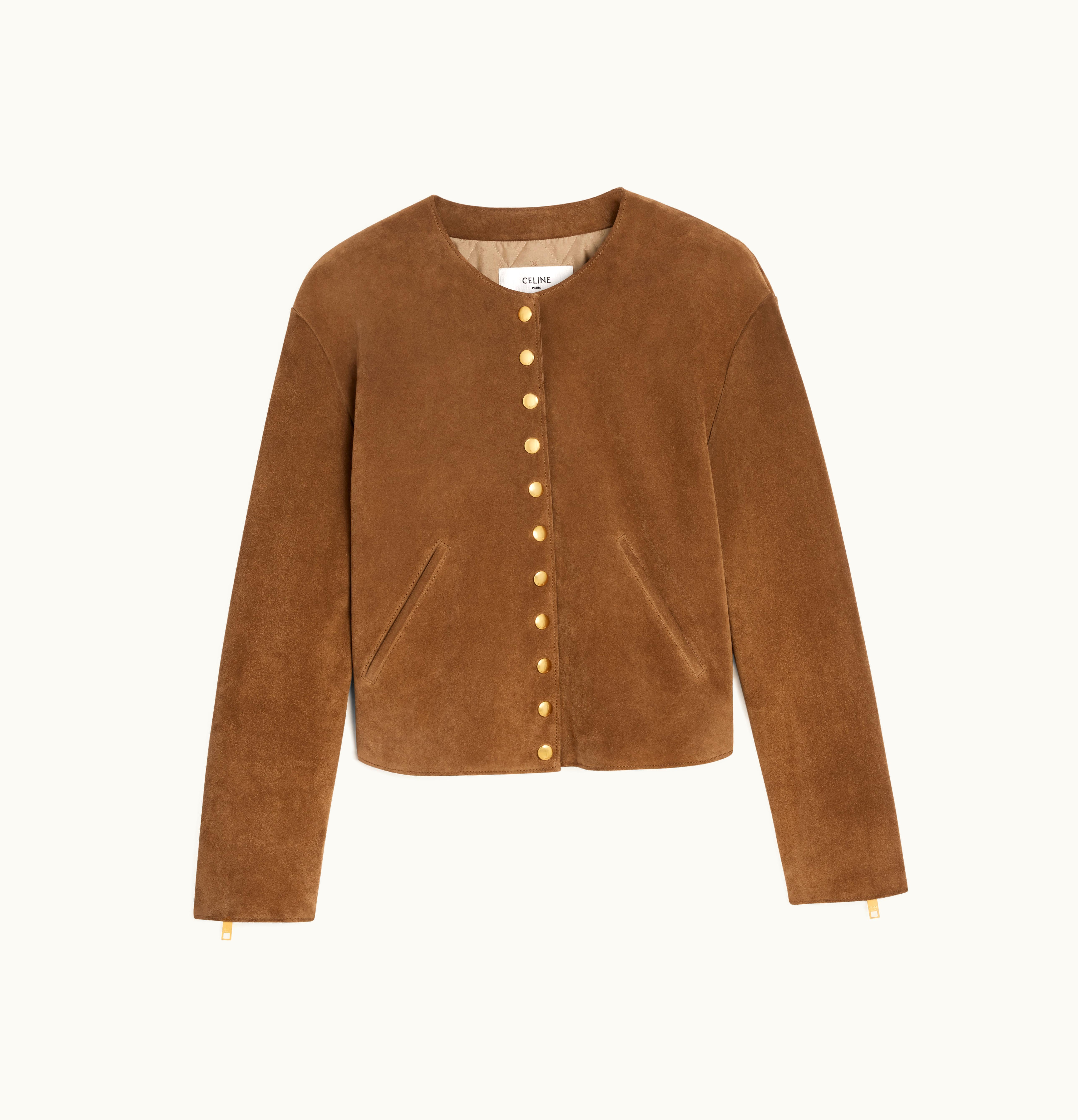 Celine Biker Jacket In Split Leather Cigar | GLINT