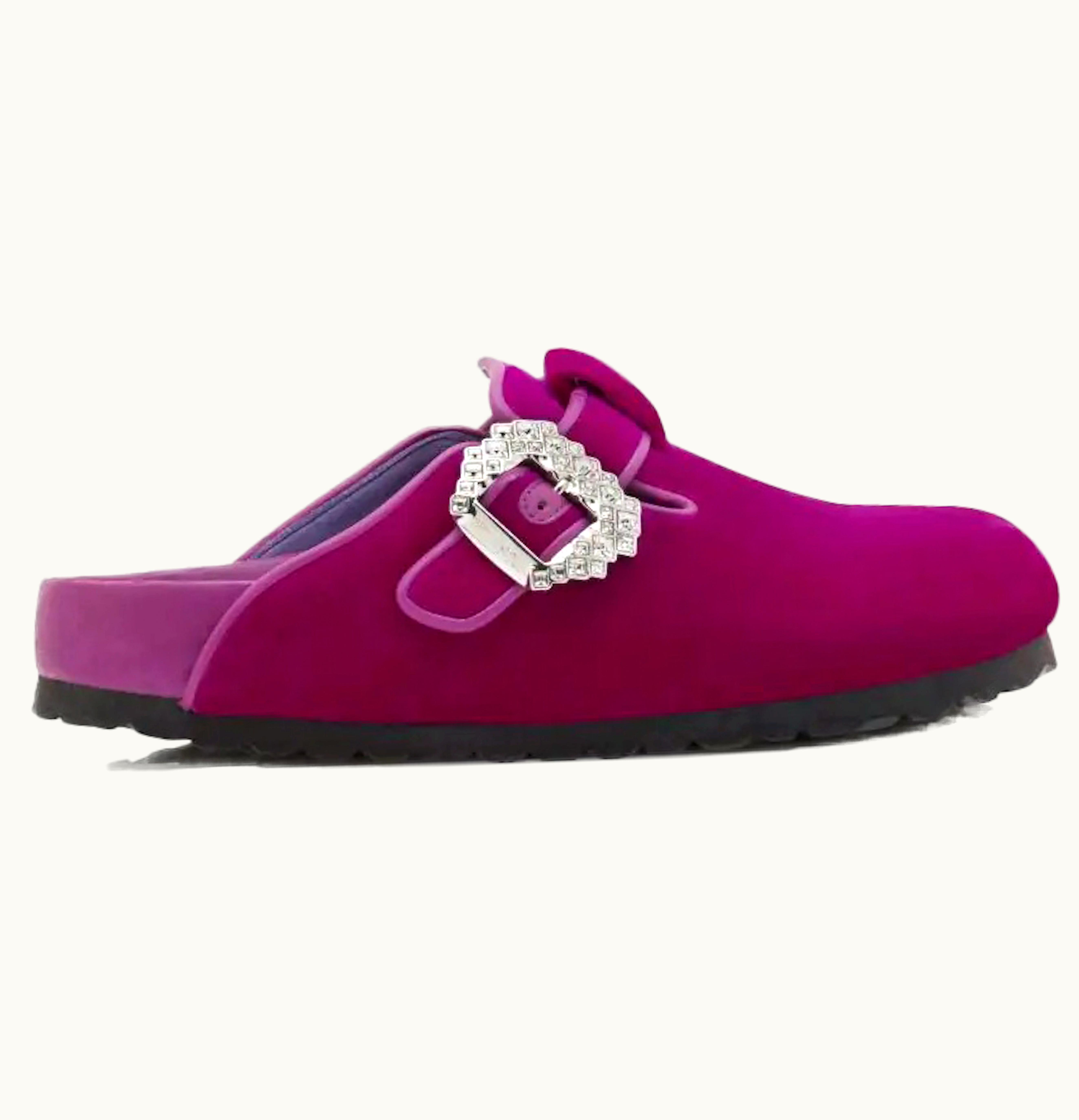Birkenstock Boston Manolo Blahnik Fuchsia Velvet | GLINT