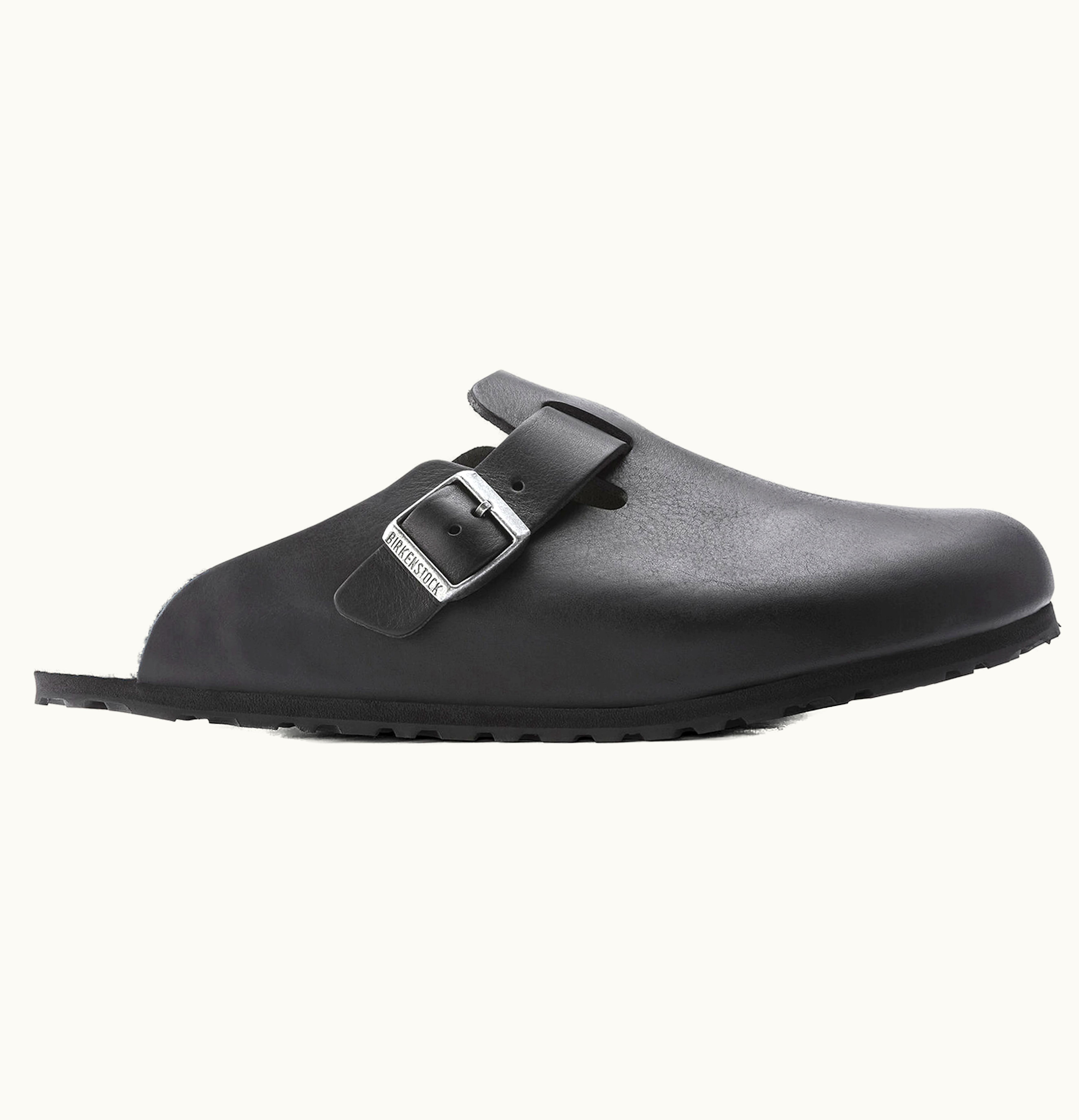 Birkenstock Boston Grip Leather Vintage Wood Black | GLINT