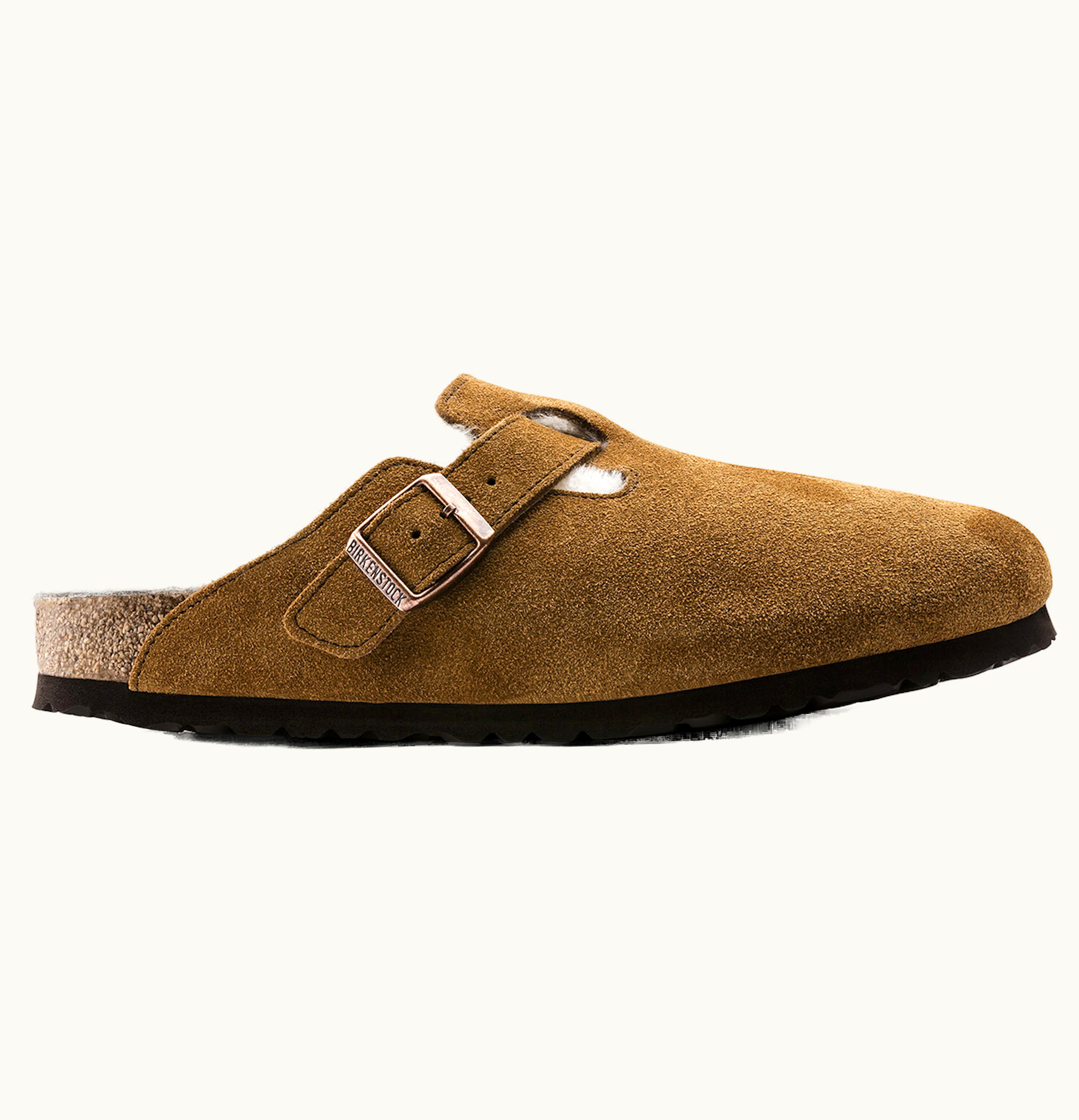 Birkenstock Boston Shearling Medium Narrow Fit Suede Leather Mink | GLINT