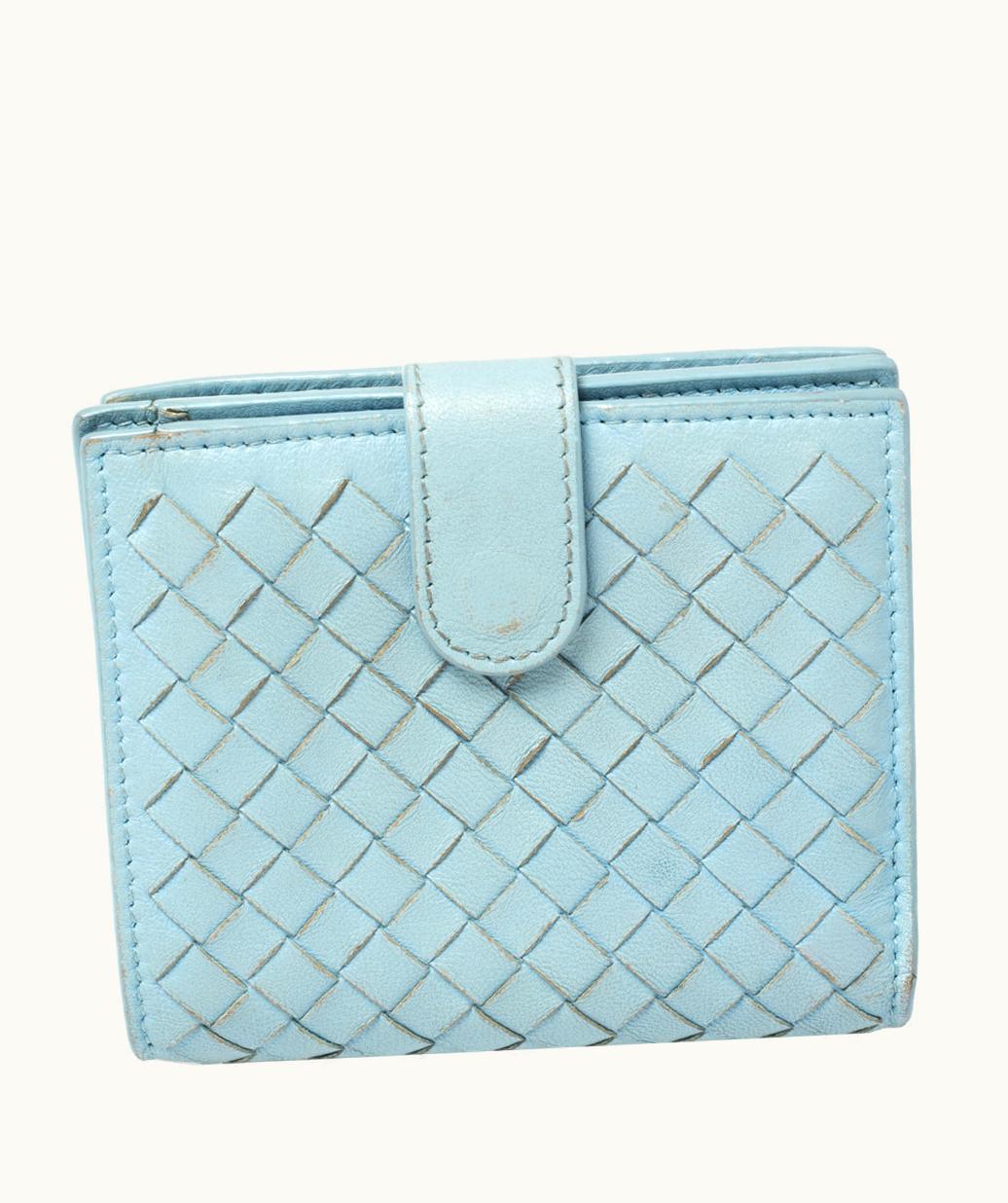 Bottega Veneta Blue Intrecciato Leather French Wallet | GLINT