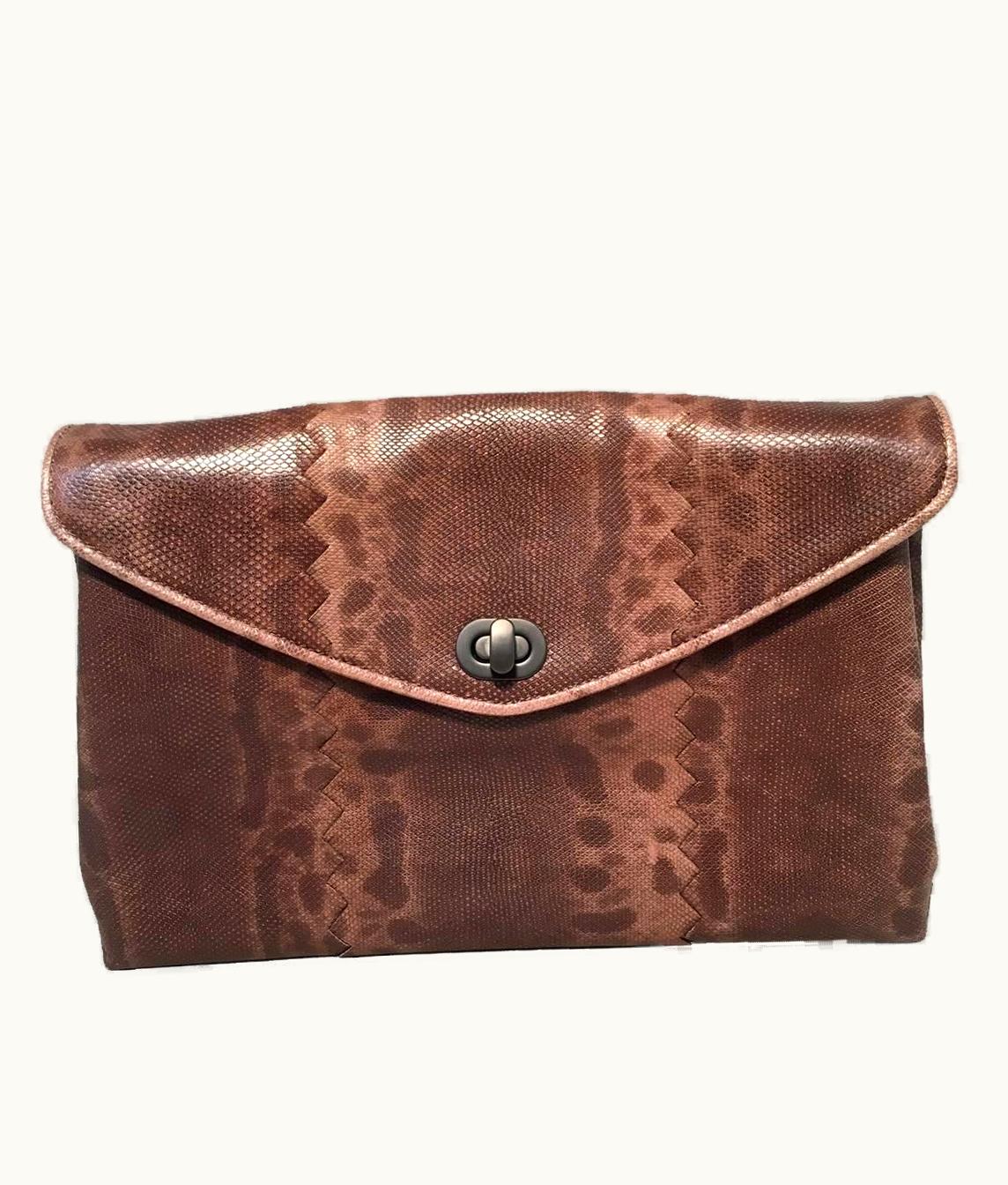 Bottega Veneta Brown Lizard Leather Clutch | GLINT