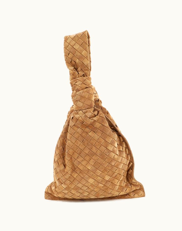 Bottega Veneta BV Twist Bag Intrecciato Suede Luxury Tote Neutral | GLINT