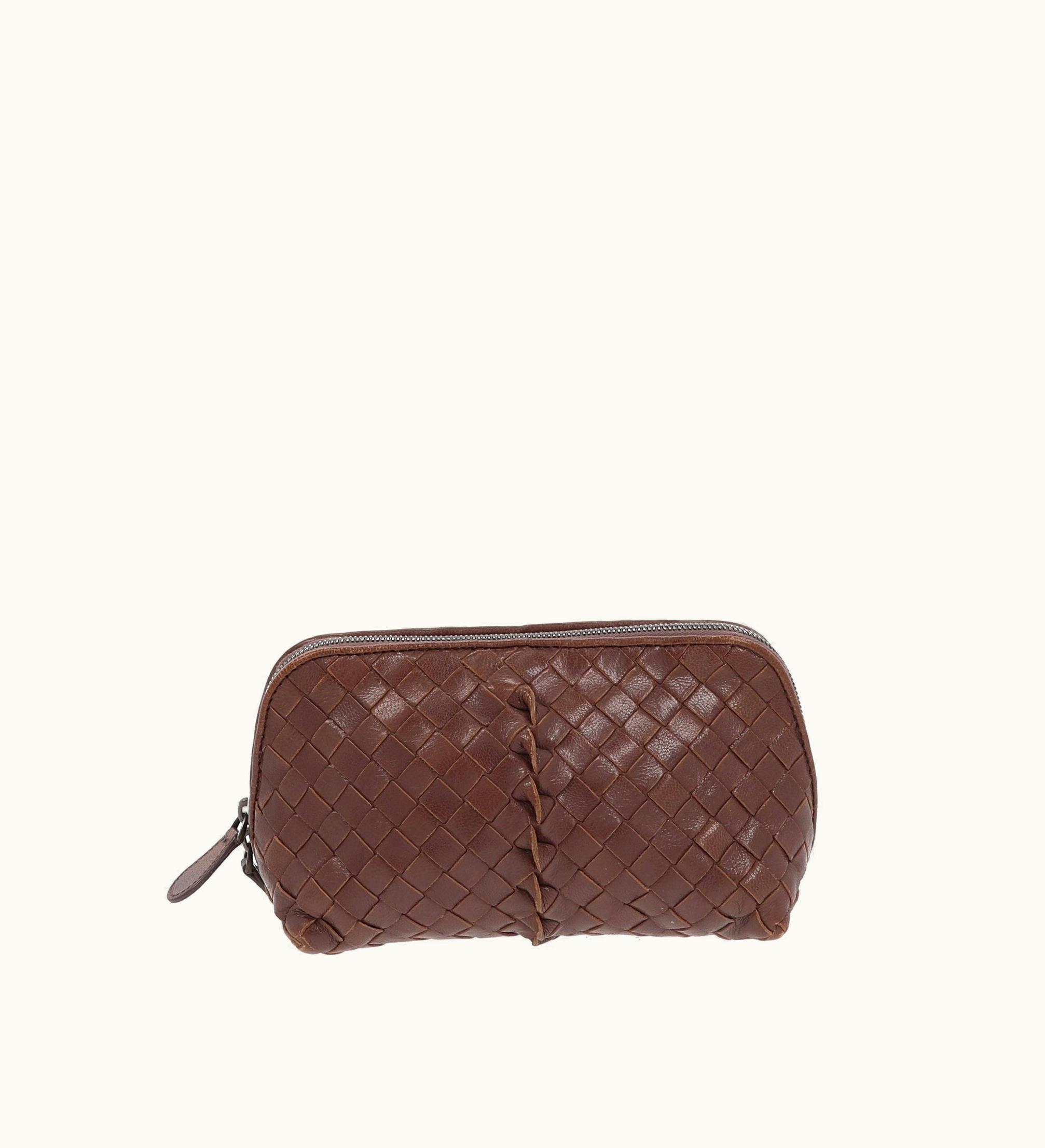 Bottega Veneta Little Pouch In Brown Leather | GLINT