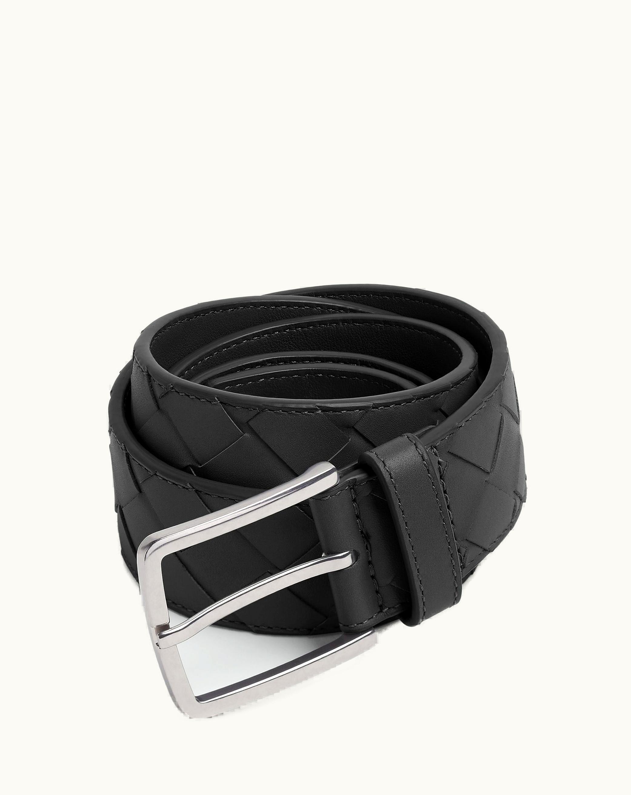 Bottega Veneta Men's Intrecciato Belt In Black | GLINT