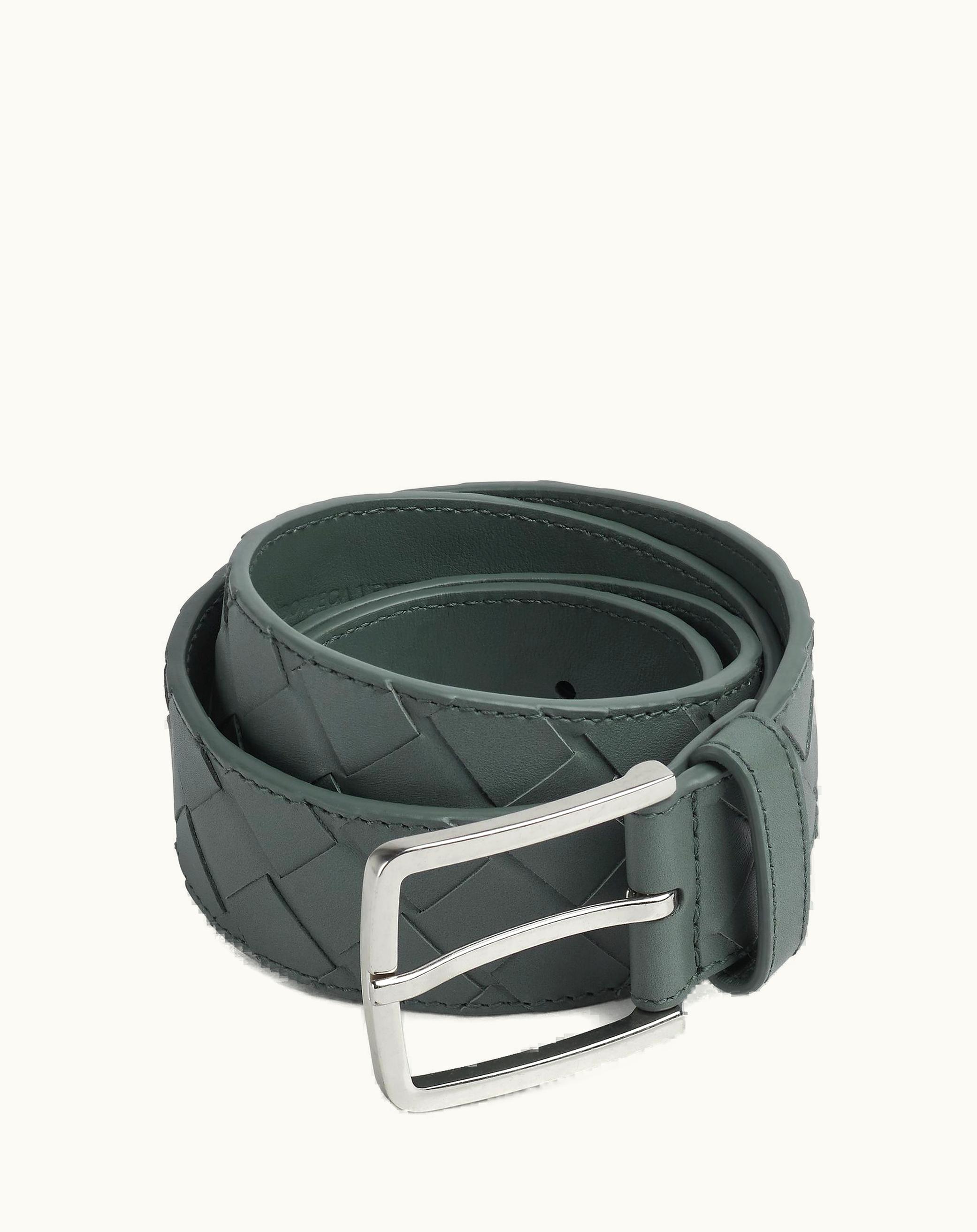 Bottega Veneta Men's Intrecciato Belt In Slate | GLINT