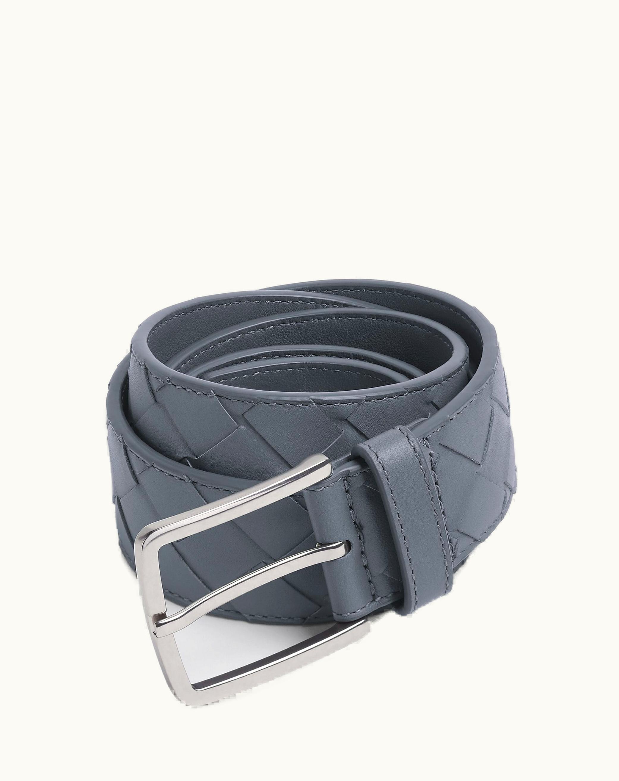 Bottega Veneta Men's Intrecciato Belt In Thunder | GLINT