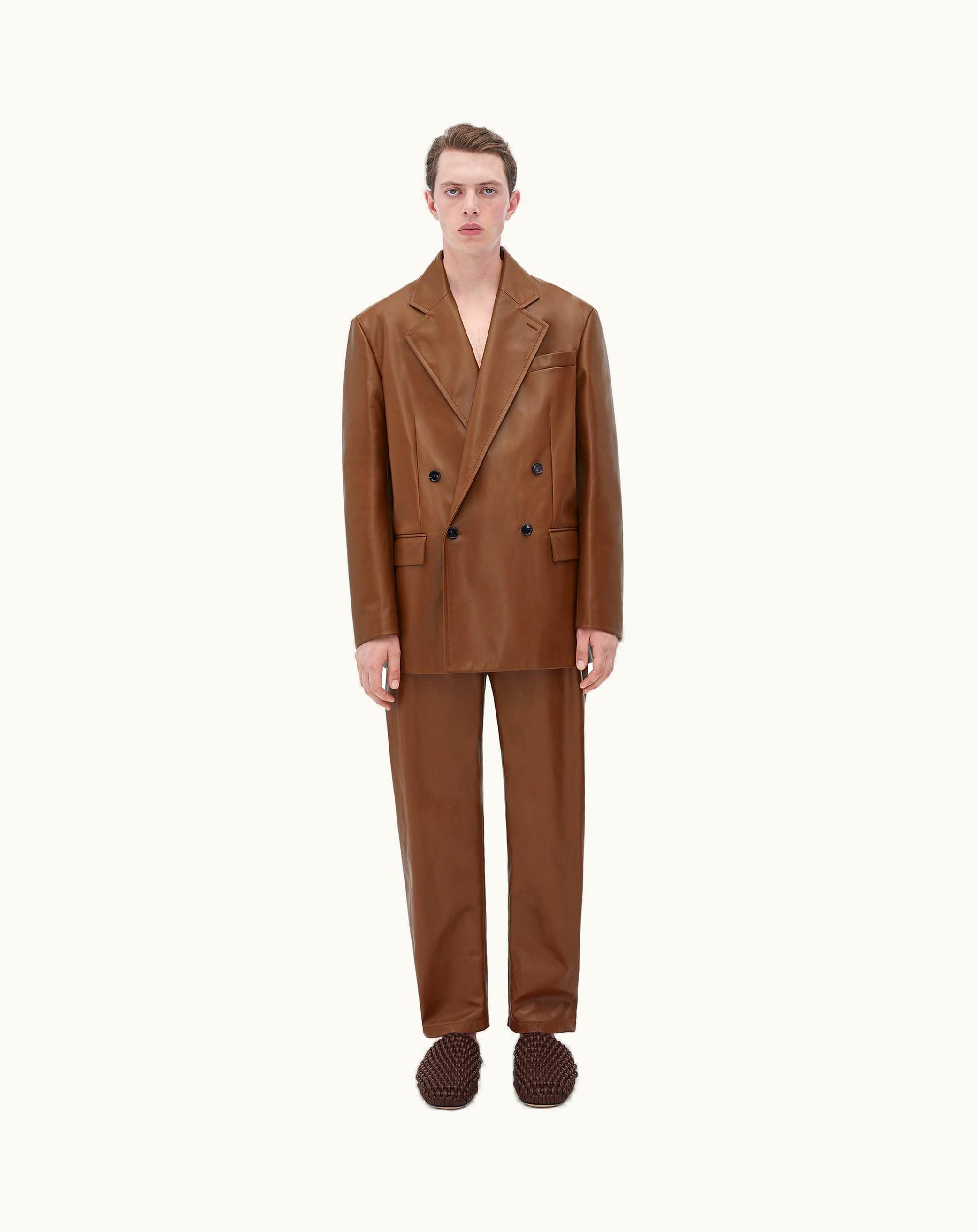 Bottega Veneta Men's Leather Jacket In Toffee | GLINT