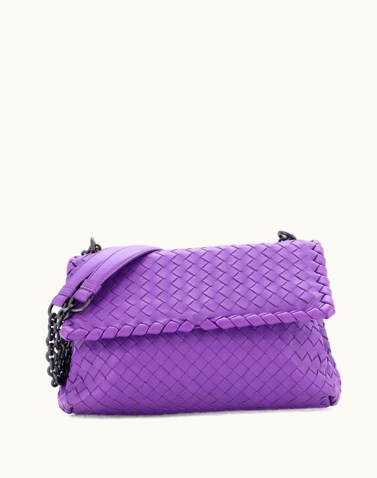 Bottega Veneta Olimpia Crossbody Bag Intrecciato Nappa Small Leather Purple Gun Metal | GLINT