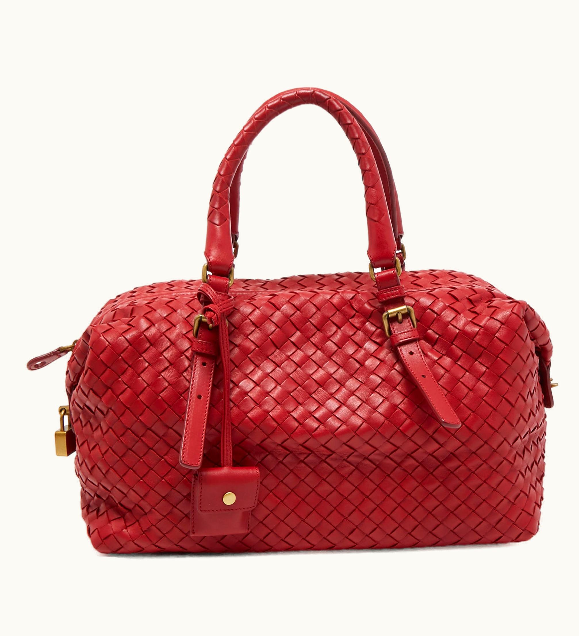 Bottega Veneta Red Intrecciato Leather Montaigne Satchel | GLINT