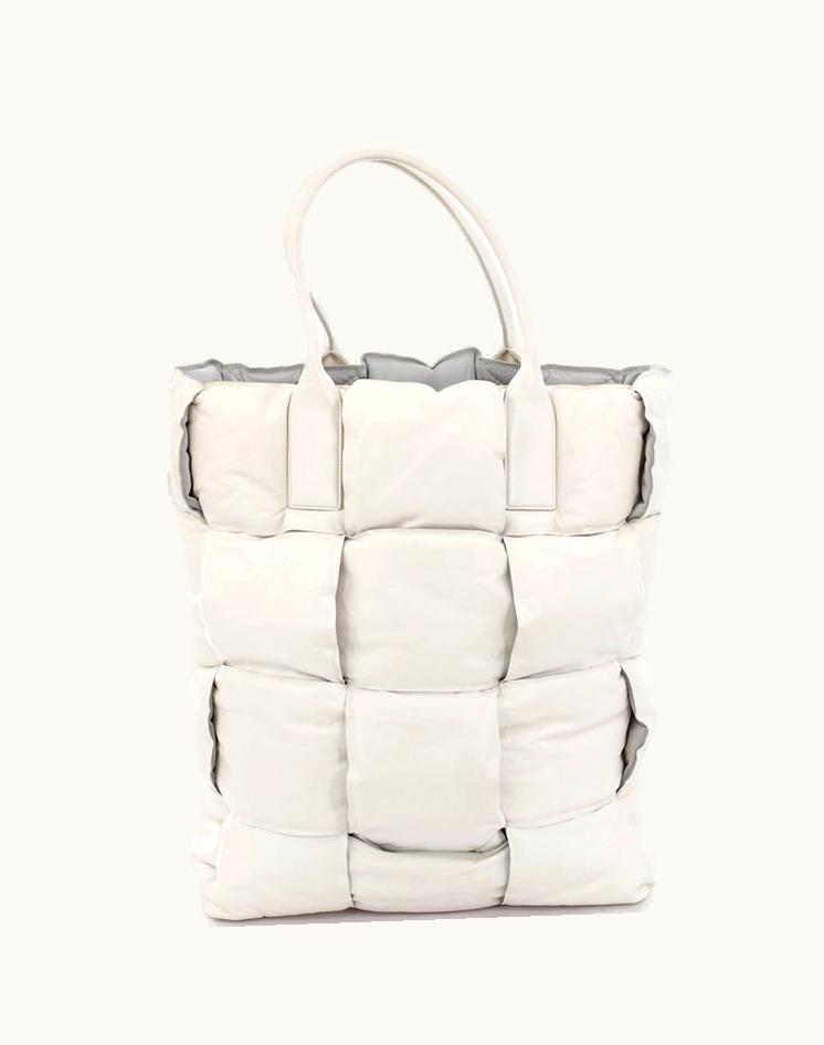 Bottega Veneta Squash Tote Padded Maxi Intrecciato Leather Tall White Gray Aged Silver | GLINT
