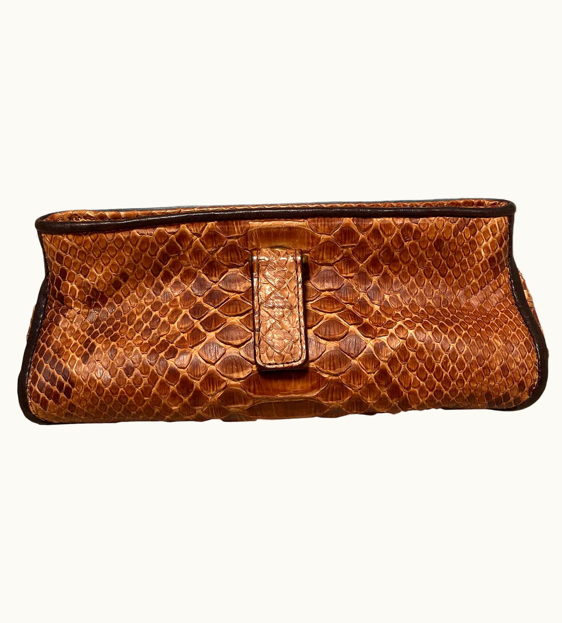 Bottega Veneta Tan Snakeskin Clutch | GLINT