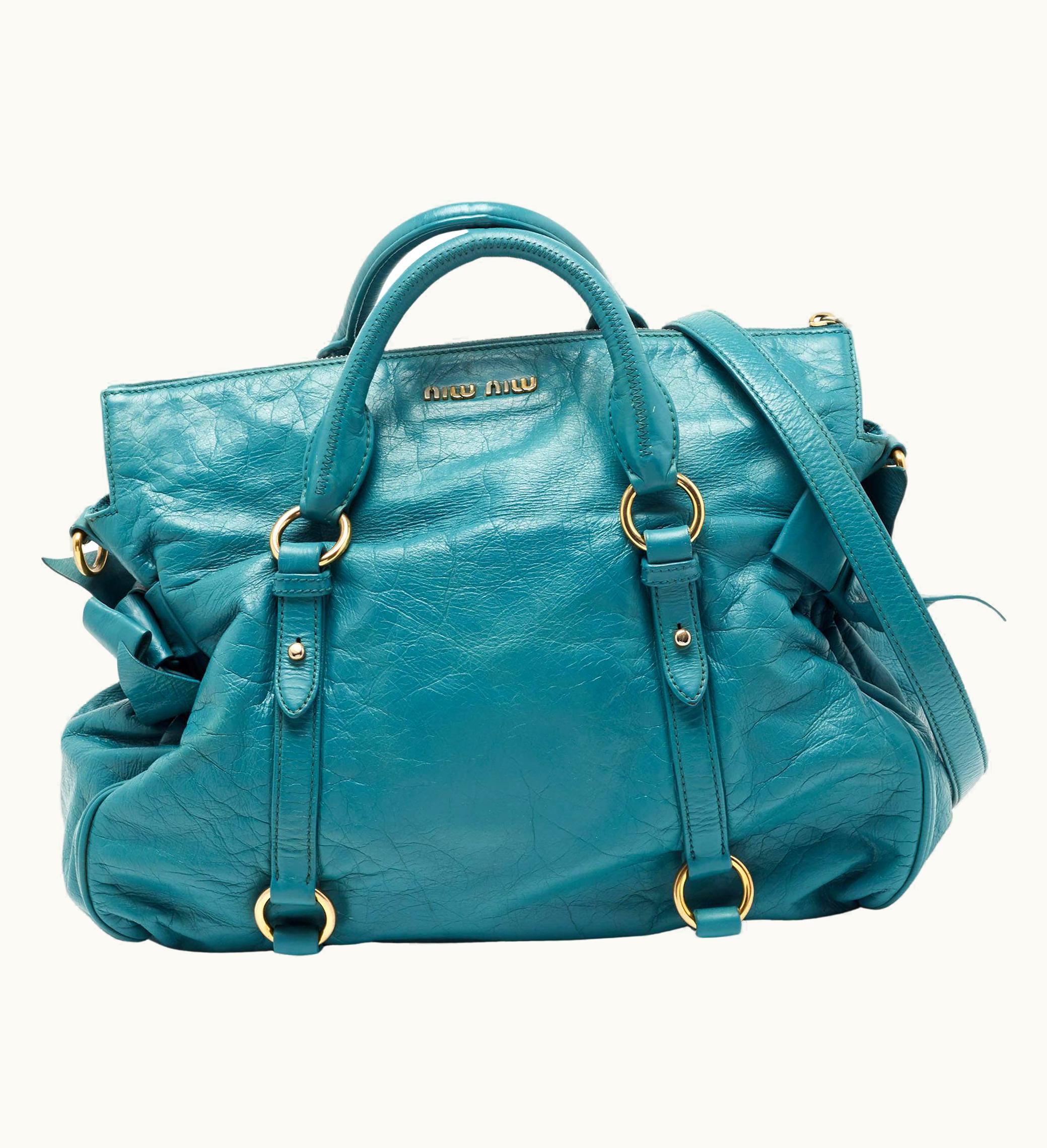 Miu Miu Teal VItello Leather Bow Bag | GLINT
