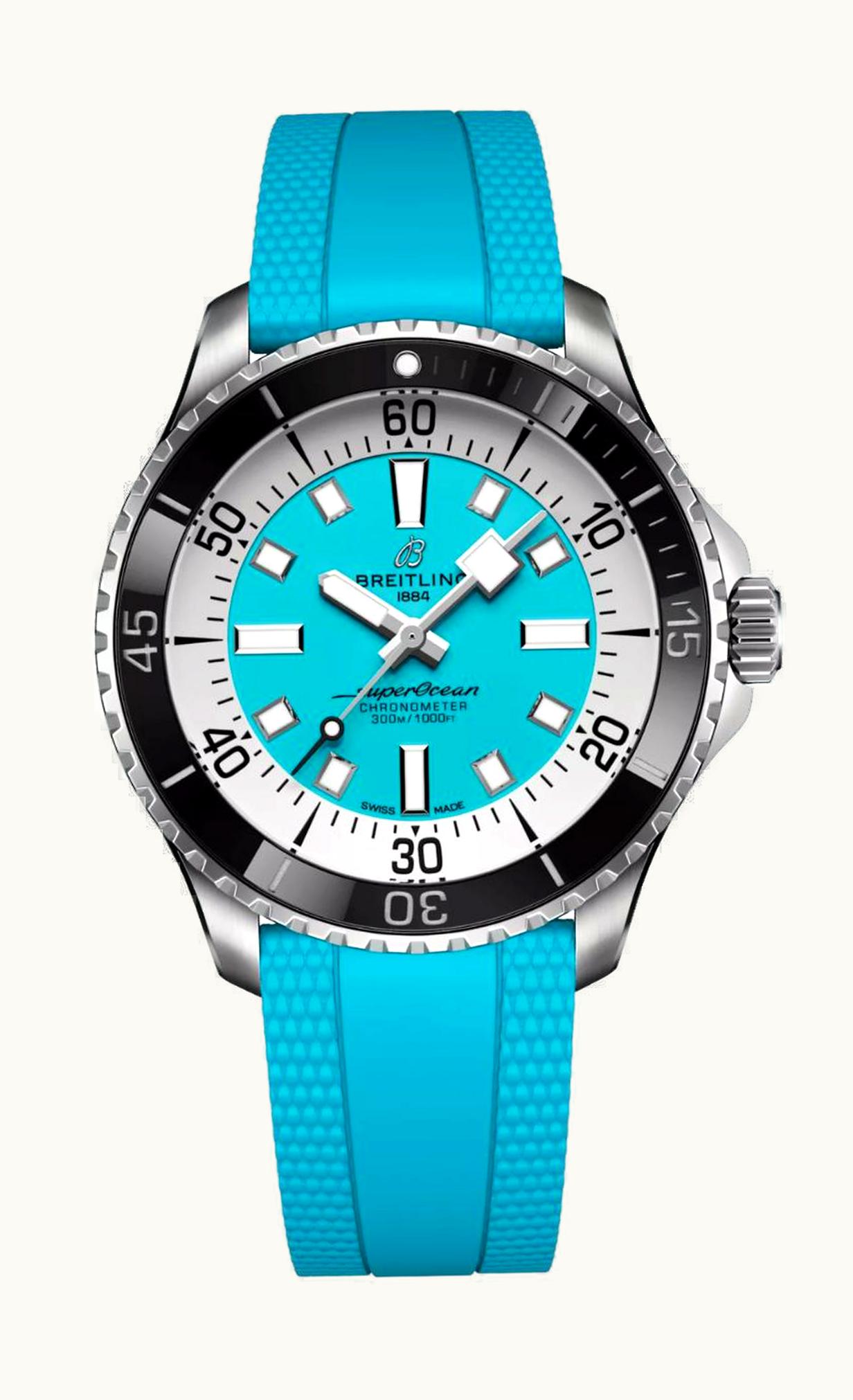 Breitling SuperOcean Automatic 44 Stainless Steel / Turquoise / Rubber A17376211L2S2 | GLINT
