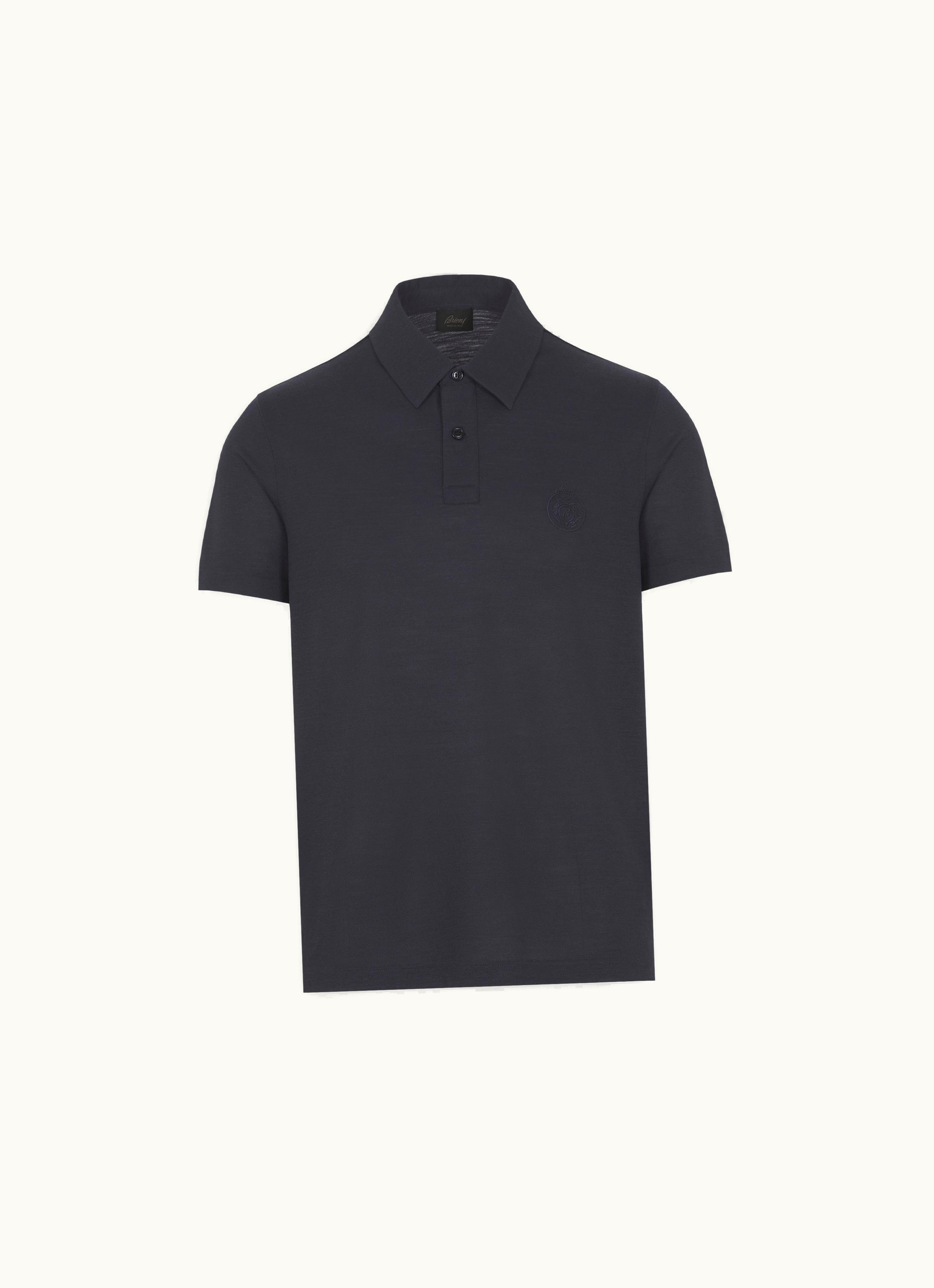 Brioni Navy Blue Tech Wool Polo 813302315 | GLINT