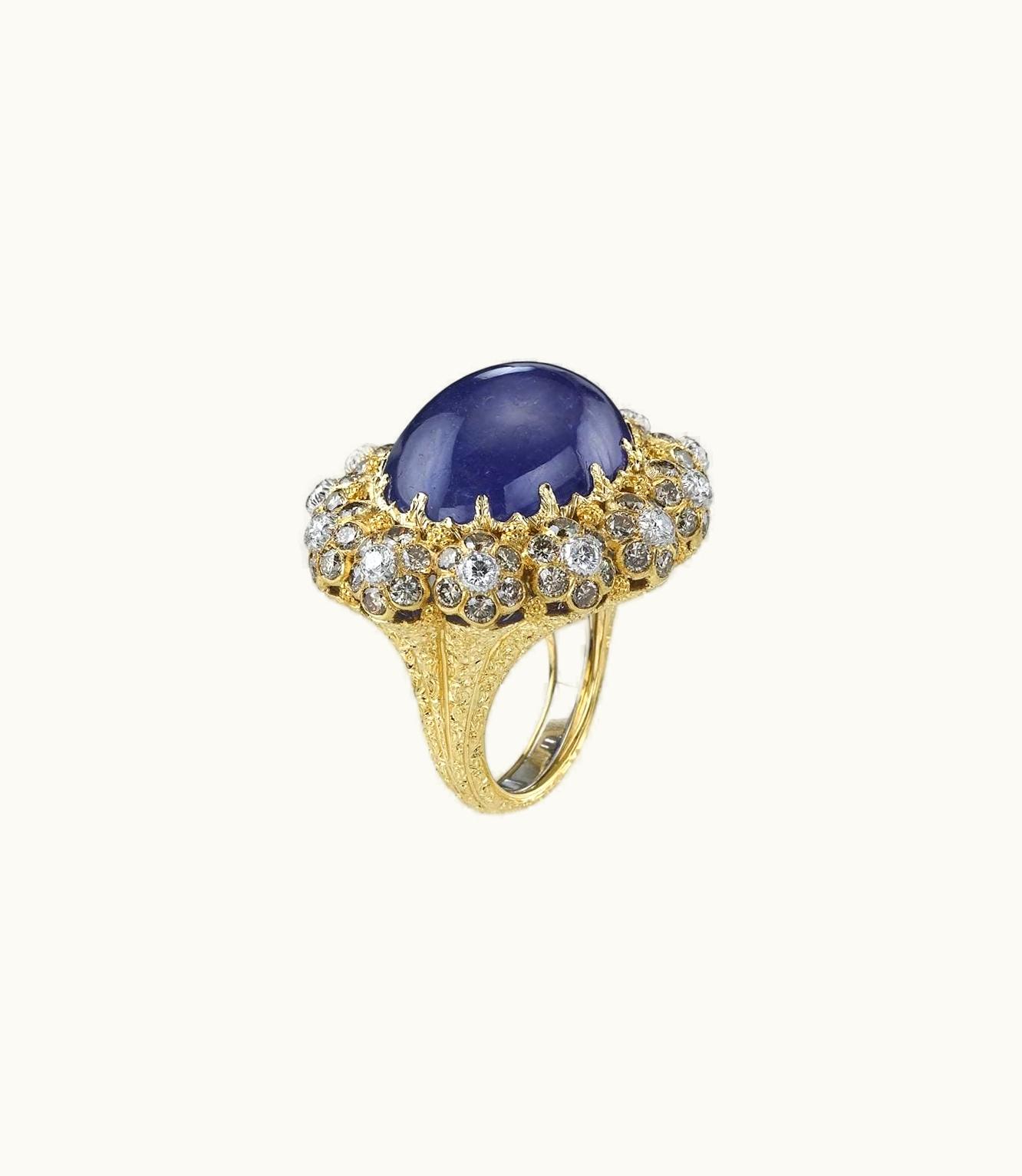 A striking piece of jewelry crafted from a combination of yellow and white gold, adorned with an array of mesmerizing semi-precious stones.