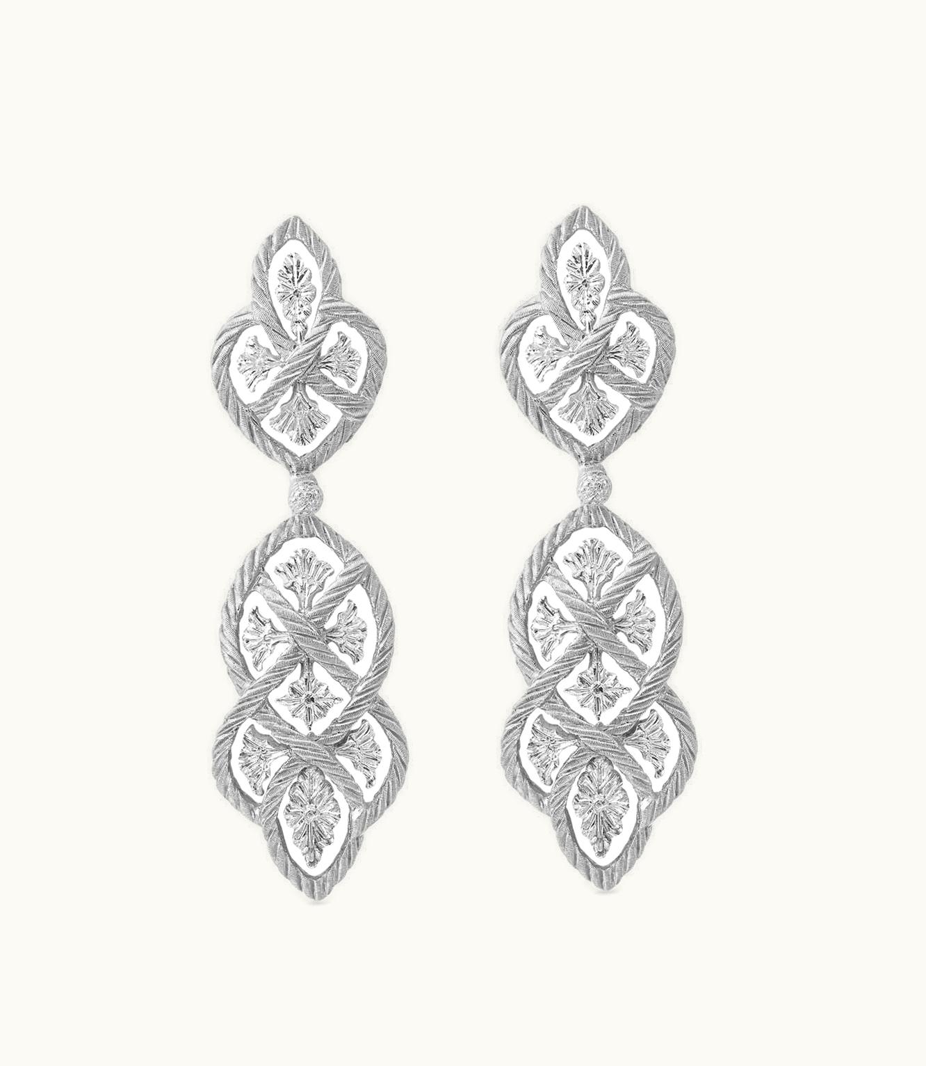 Glistening ear adornments in the finest white gold.