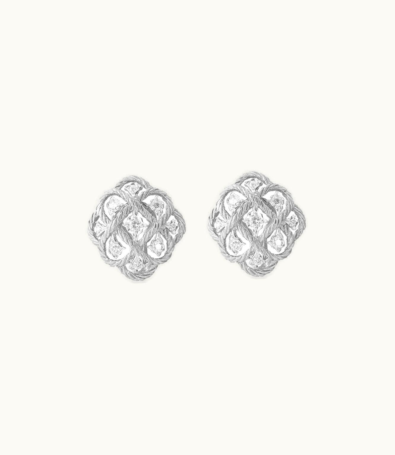 Stunning diamond-studded earrings crafted in beautiful white gold.