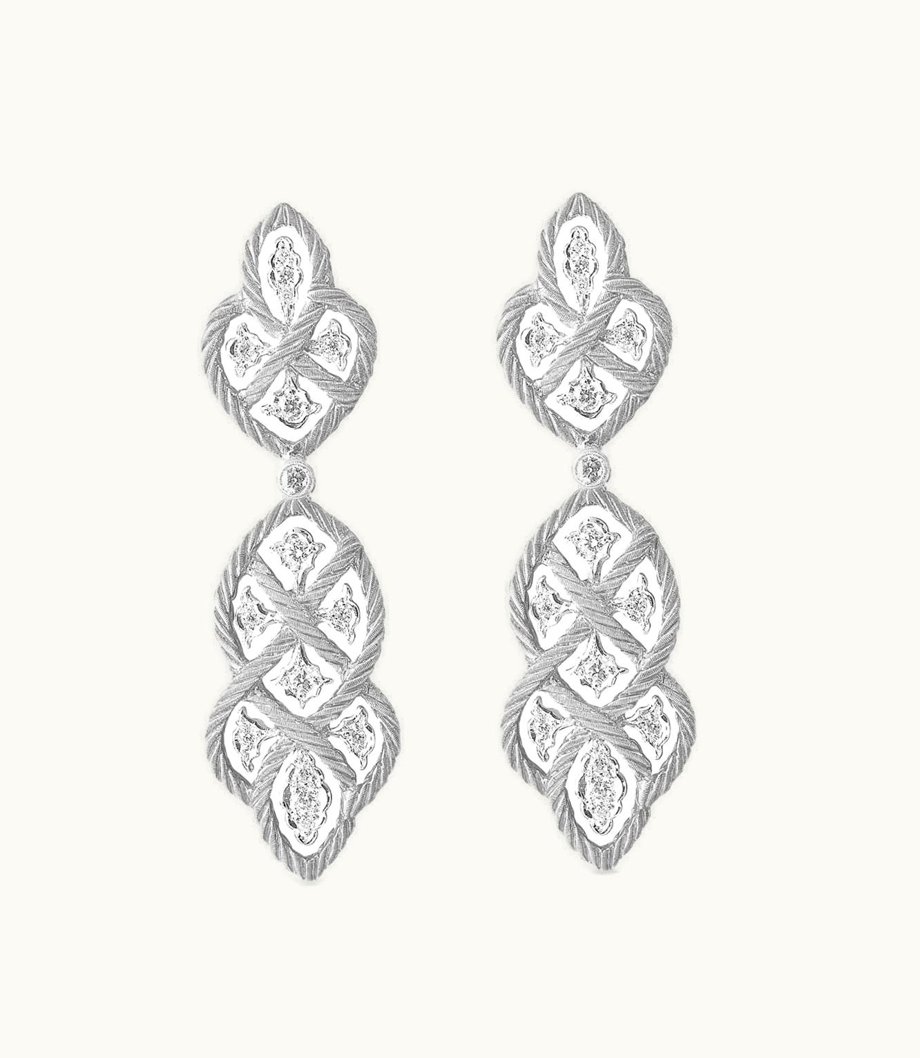 Beautiful diamond-studded white gold earrings.