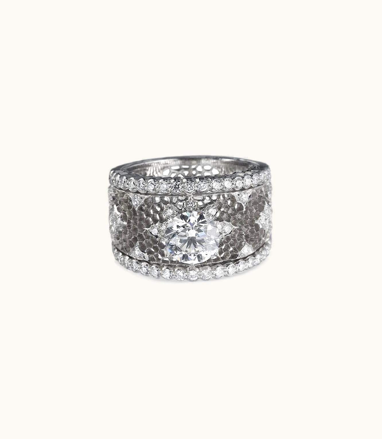 This exquisite piece features a diamond stone set in white gold, with a round cut and a central stone ranging from 1.20 ct to 1.29 ct. For those looking for something grander, we also offer bigger stones upon request.