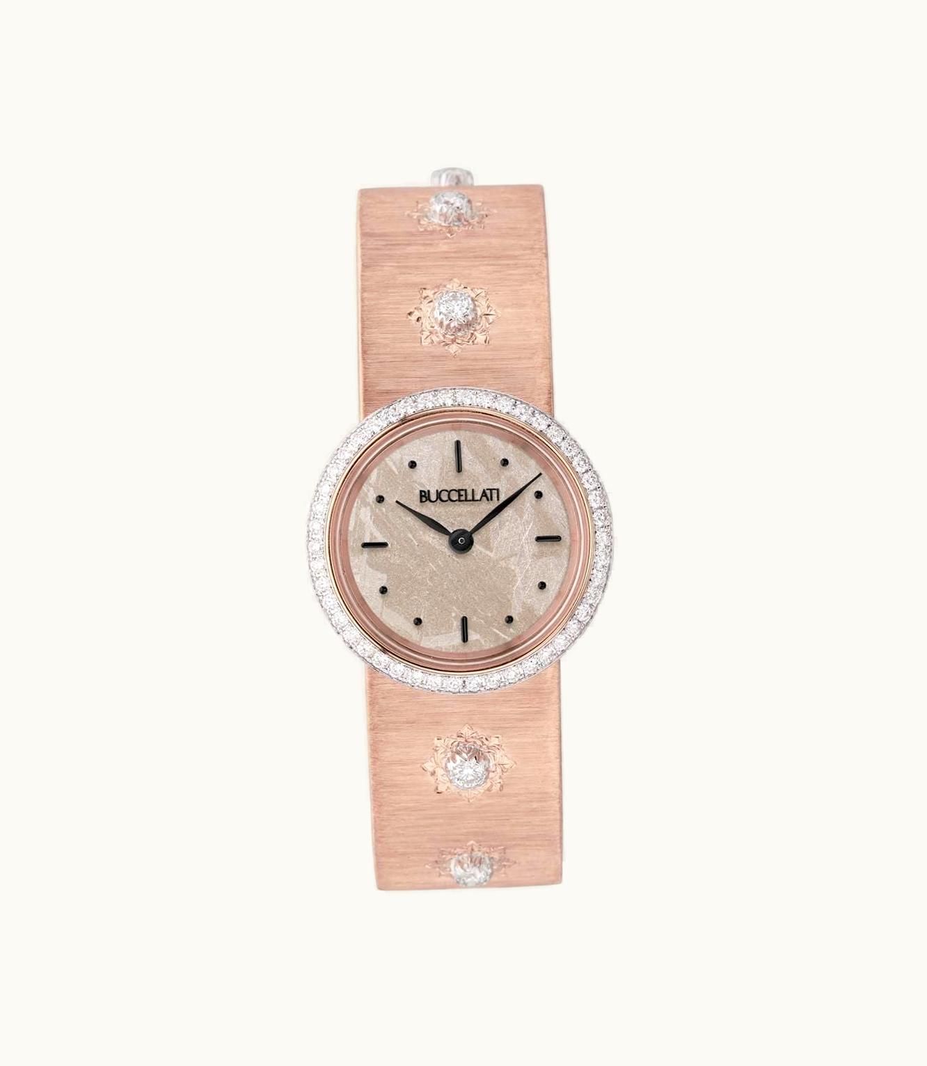 This exquisite timepiece is a pink gold Ladies Diams watch adorned with sparkling diamonds. Measuring 24mm in diameter, the watch boasts a Swiss Quartz movement for precision and elegance.