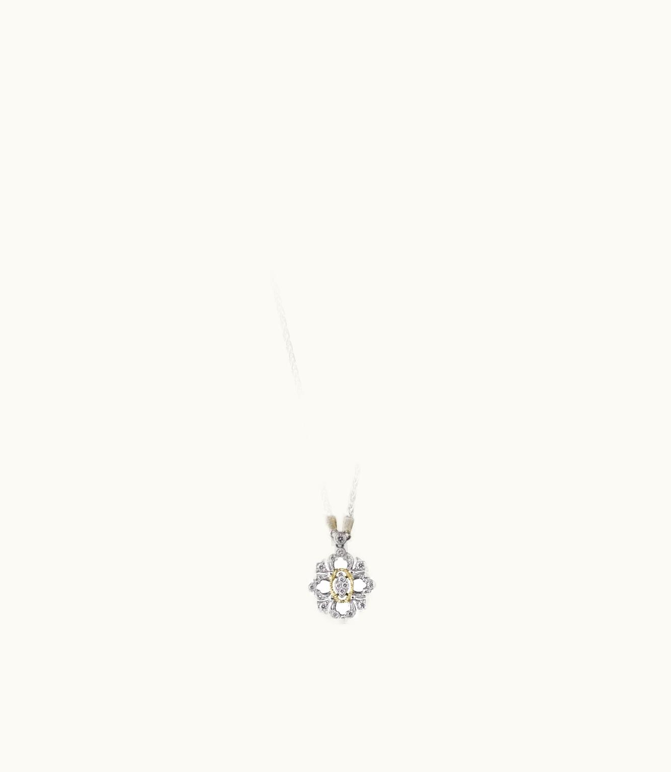 A beautiful pendant crafted with a combination of white and yellow gold and adorned with exquisite diamonds.
