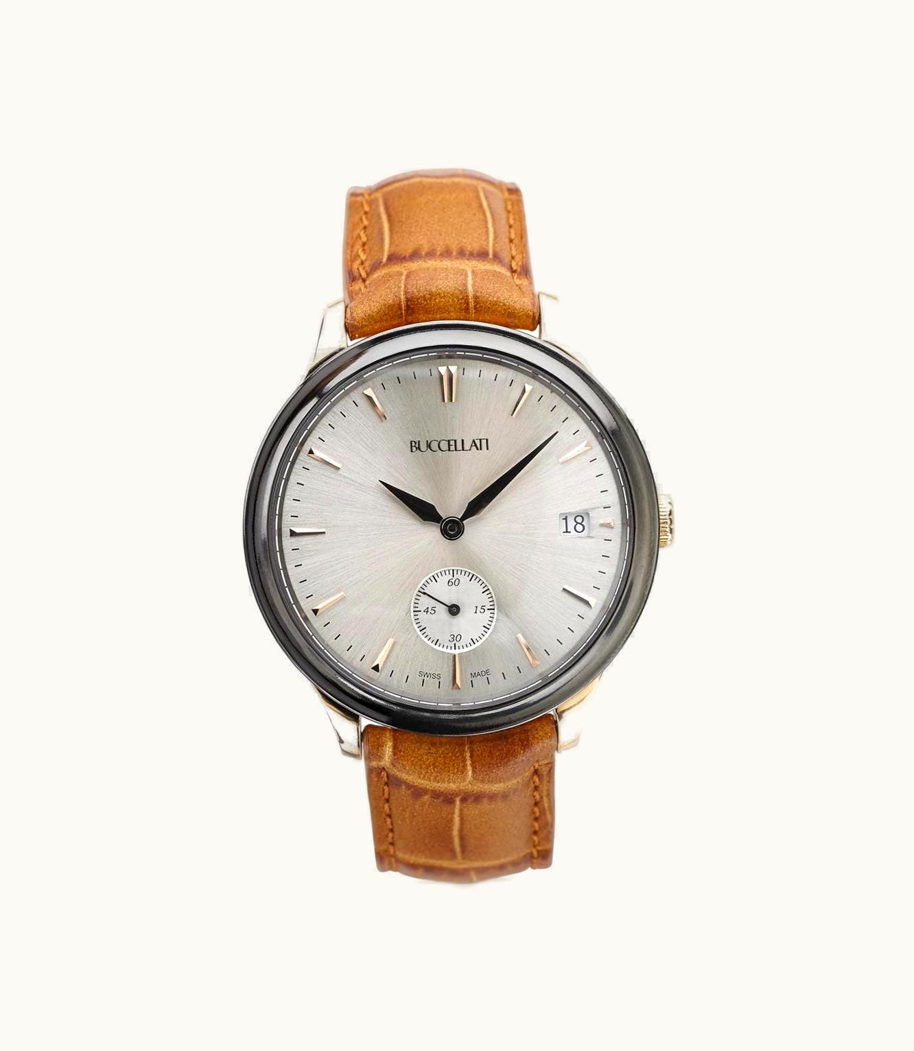 A gorgeous timepiece crafted for men, featuring a stunning leather strap complemented by engraved detailing, all presented in a sleek pink gold dlc. With a diameter of 41 mm and powered by a Swiss Vaucher movement, this watch offers both style and substance.