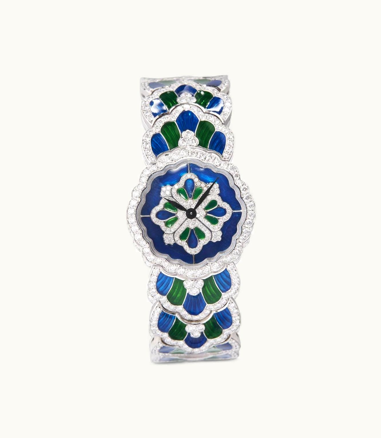 A stunning women's timepiece crafted in exquisite white gold and embellished with sparkling diamonds. Boasting a dainty 28 mm case diameter and powered by a reliable Swiss Quartz movement, this watch is a true statement piece.