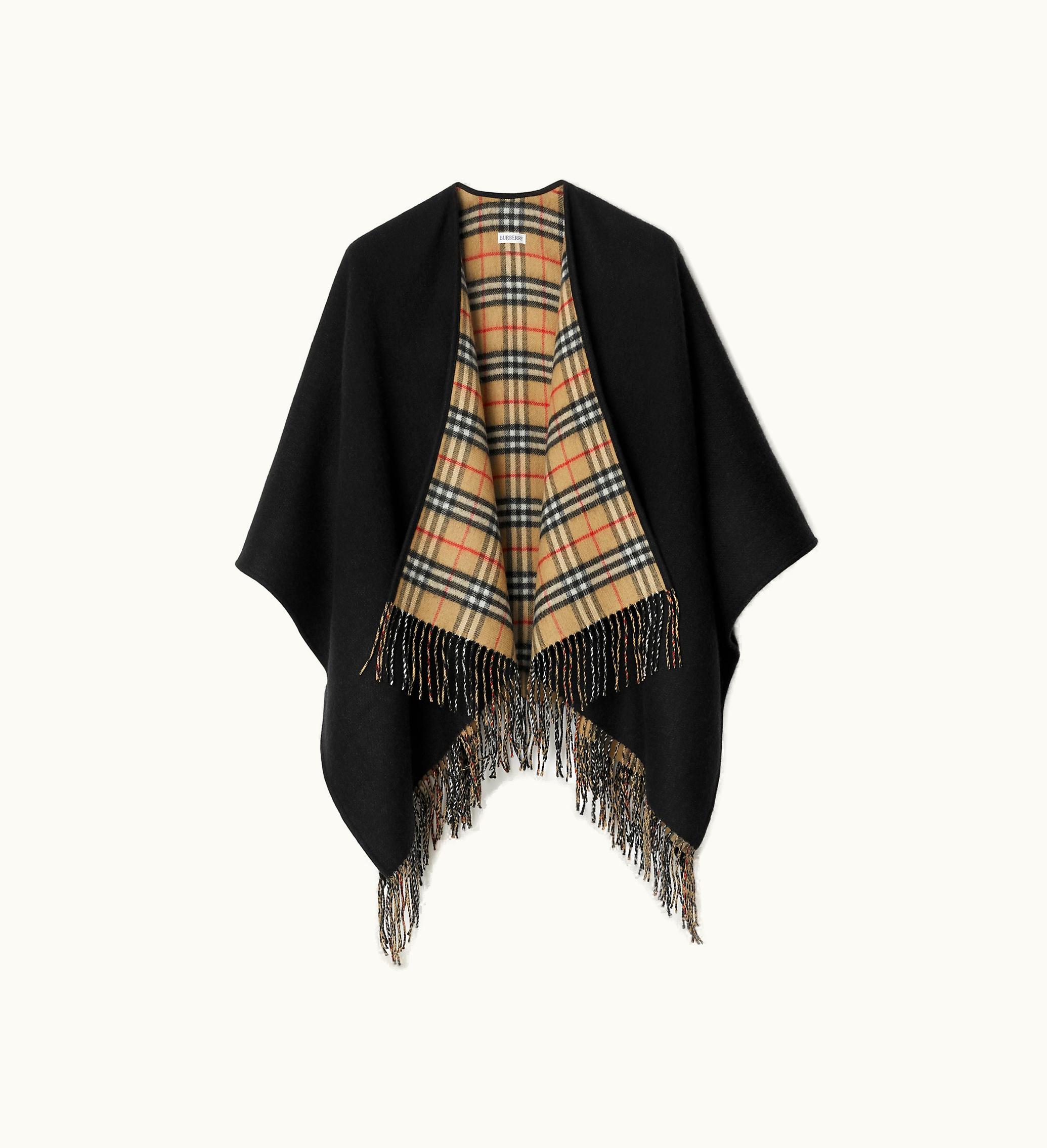 Burberry Check Wool Reversible Cape In Black | GLINT