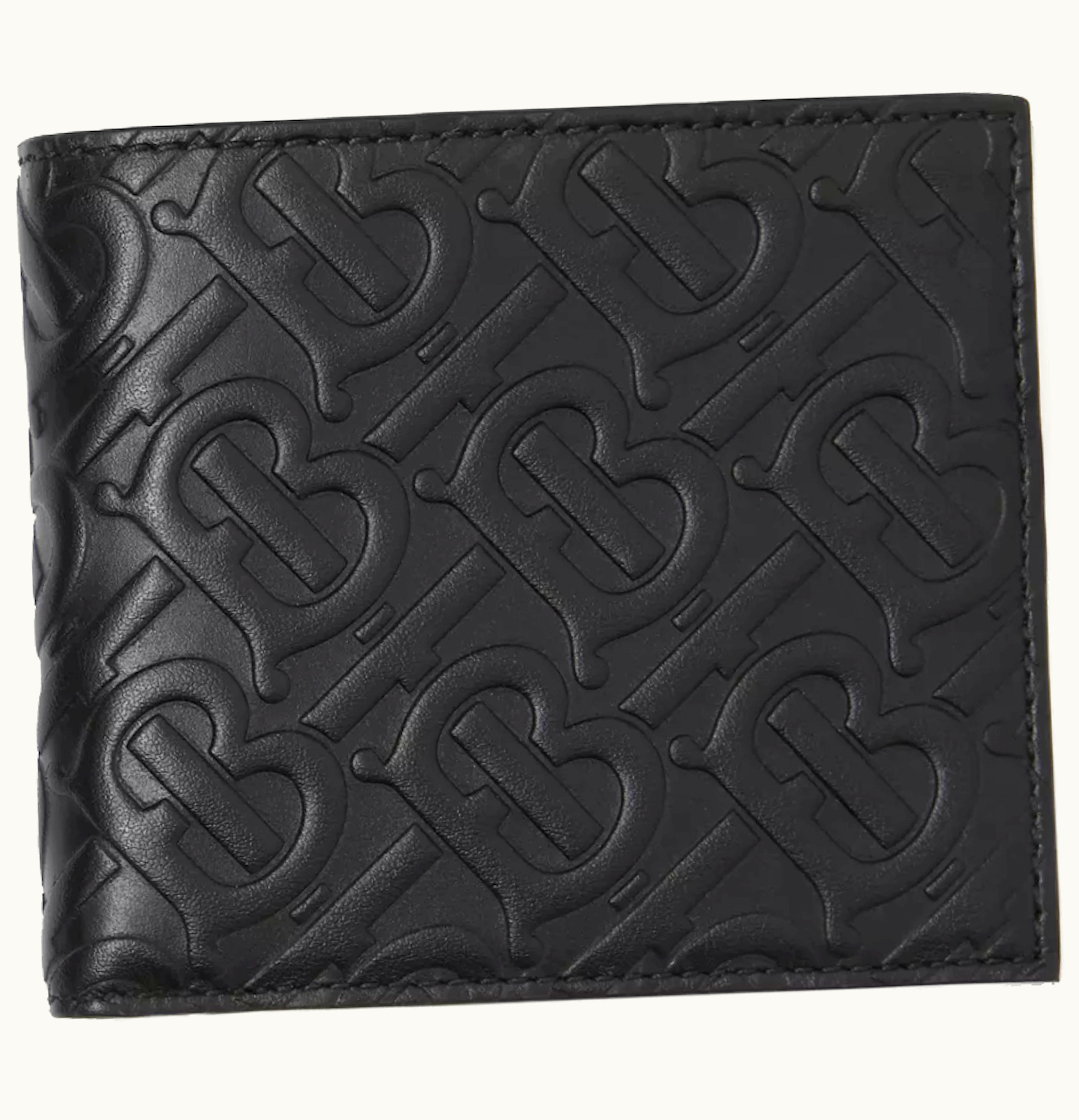 Burberry International Bifold Wallet Monogram Leather 8 Card Slot Black | GLINT