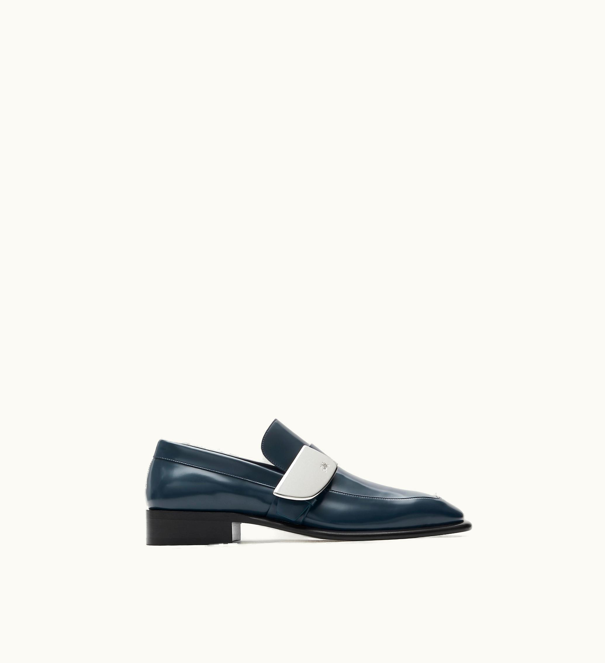 Burberry Leather Shield Loafers In Lake | GLINT