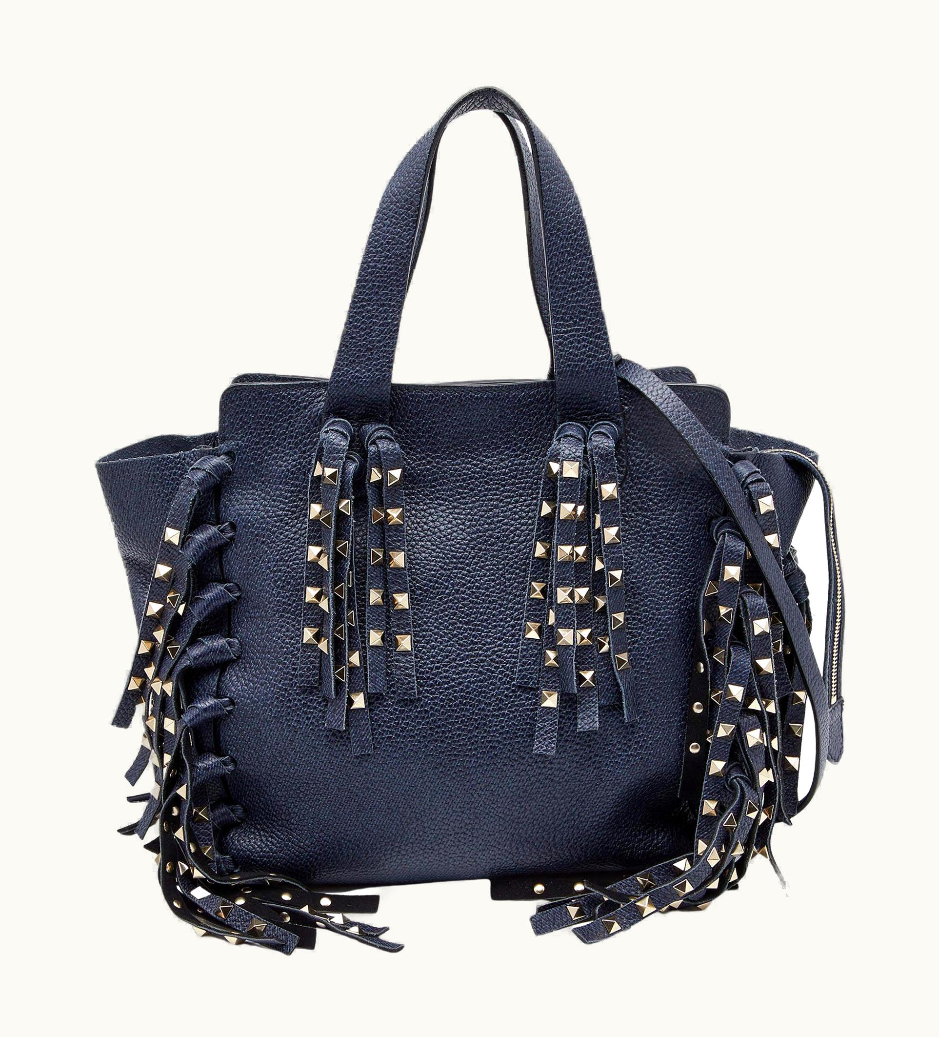 Valentino Blue Leather C-Rockee Fringe Tote UZ0610827 | GLINT