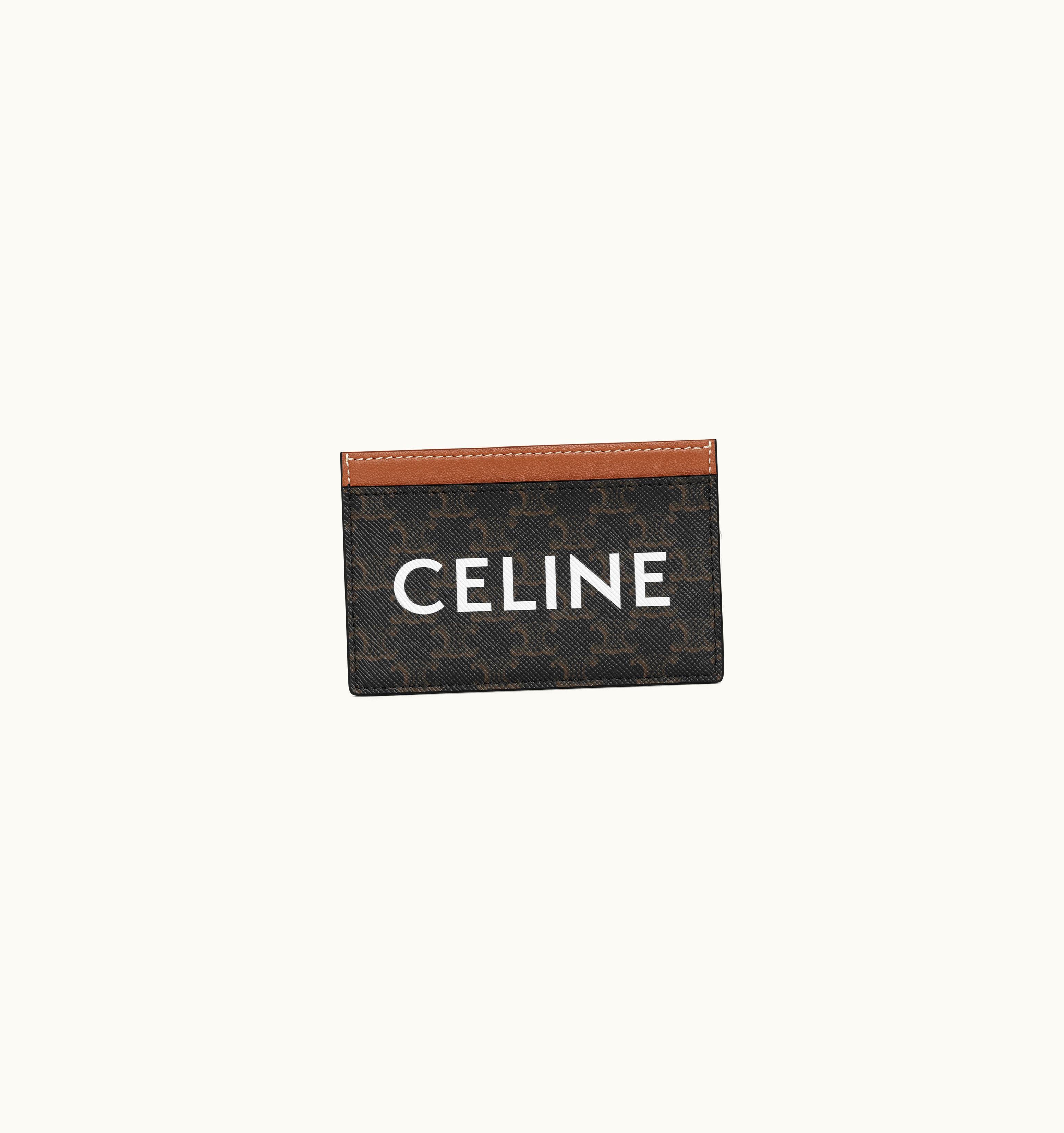 Celine Card Holder In Triomphe Canvas With Celine Print Tan | GLINT