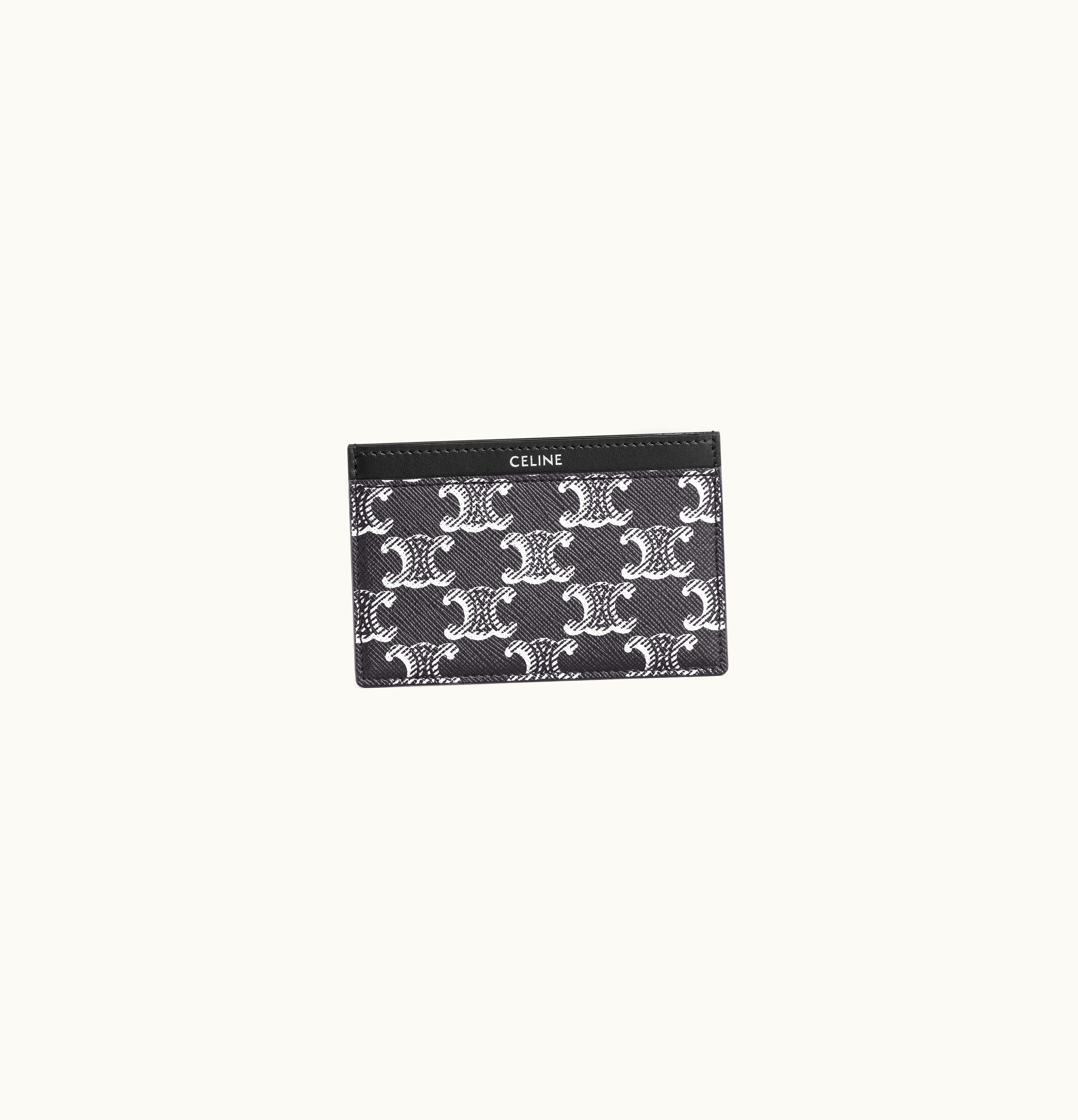 Celine Card Holder In Triomphe Canvas And Calfskin Silver / Black | GLINT