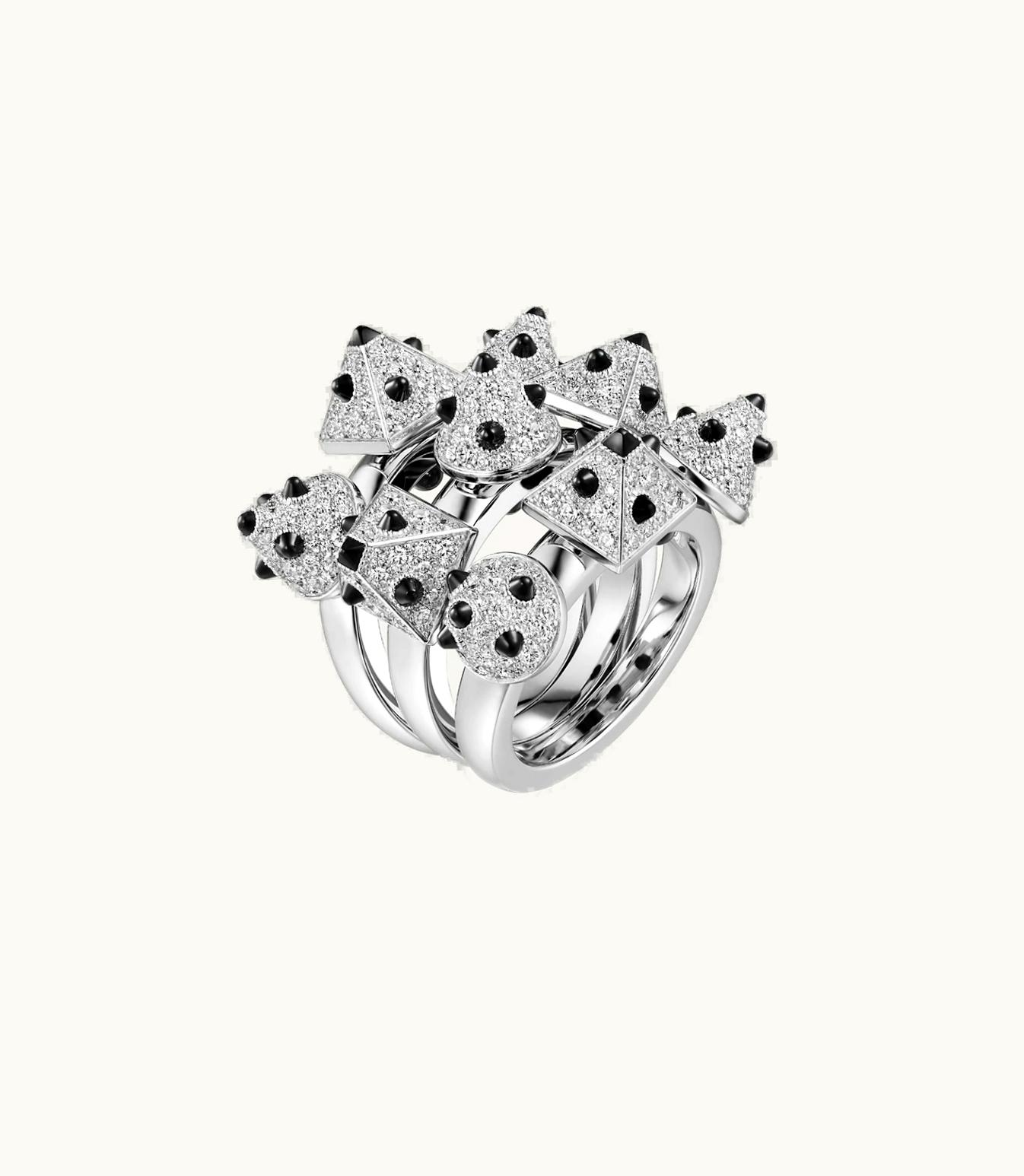 Introducing the stunning Clash [Un]limited ring made of premium 750/1000 white gold and adorned with 314 brilliant-cut diamonds totaling 2.26 carats, along with onyx for size 52. Kindly note that the carat weight, number of stones, and product dimensions may vary based on the size of your personalized order. For more information, kindly reach out to us.