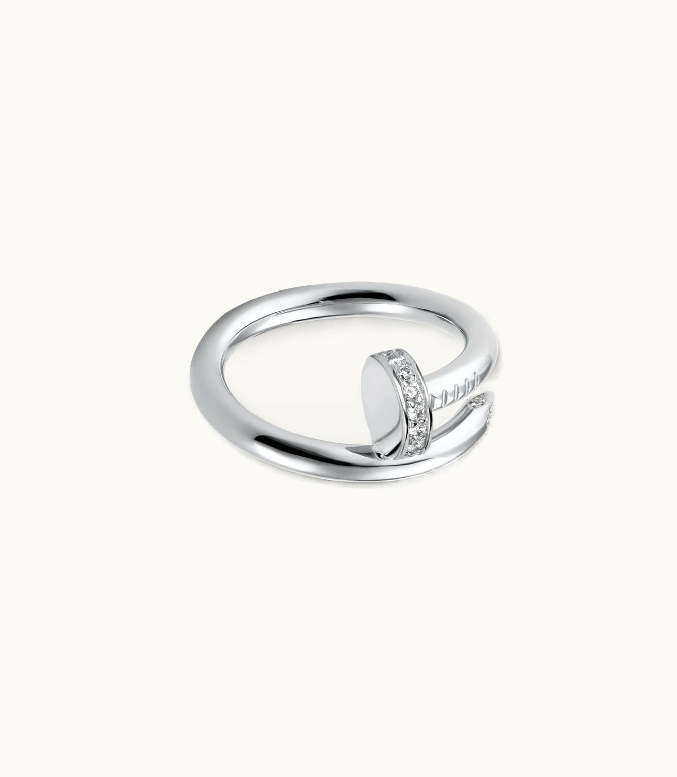 Introducing the stunning Juste un Clou ring crafted in 750/1000 white gold and adorned with 22 magnificent brilliant-cut diamonds that add up to a total of 0.13 carats. The band measures 2.65 mm in width for size 52, however, please be advised that the carat weight, stone count, and dimensions may differ based on the size of the piece you select. If you would like more comprehensive information, kindly reach out to us.